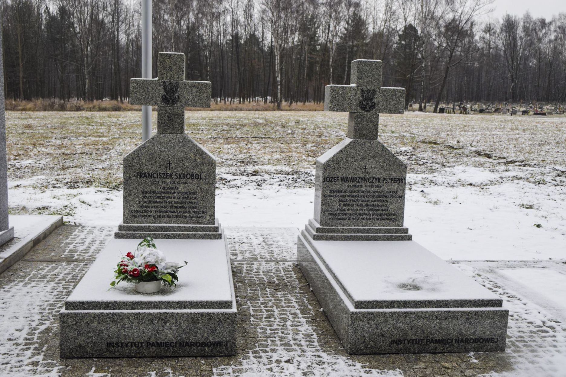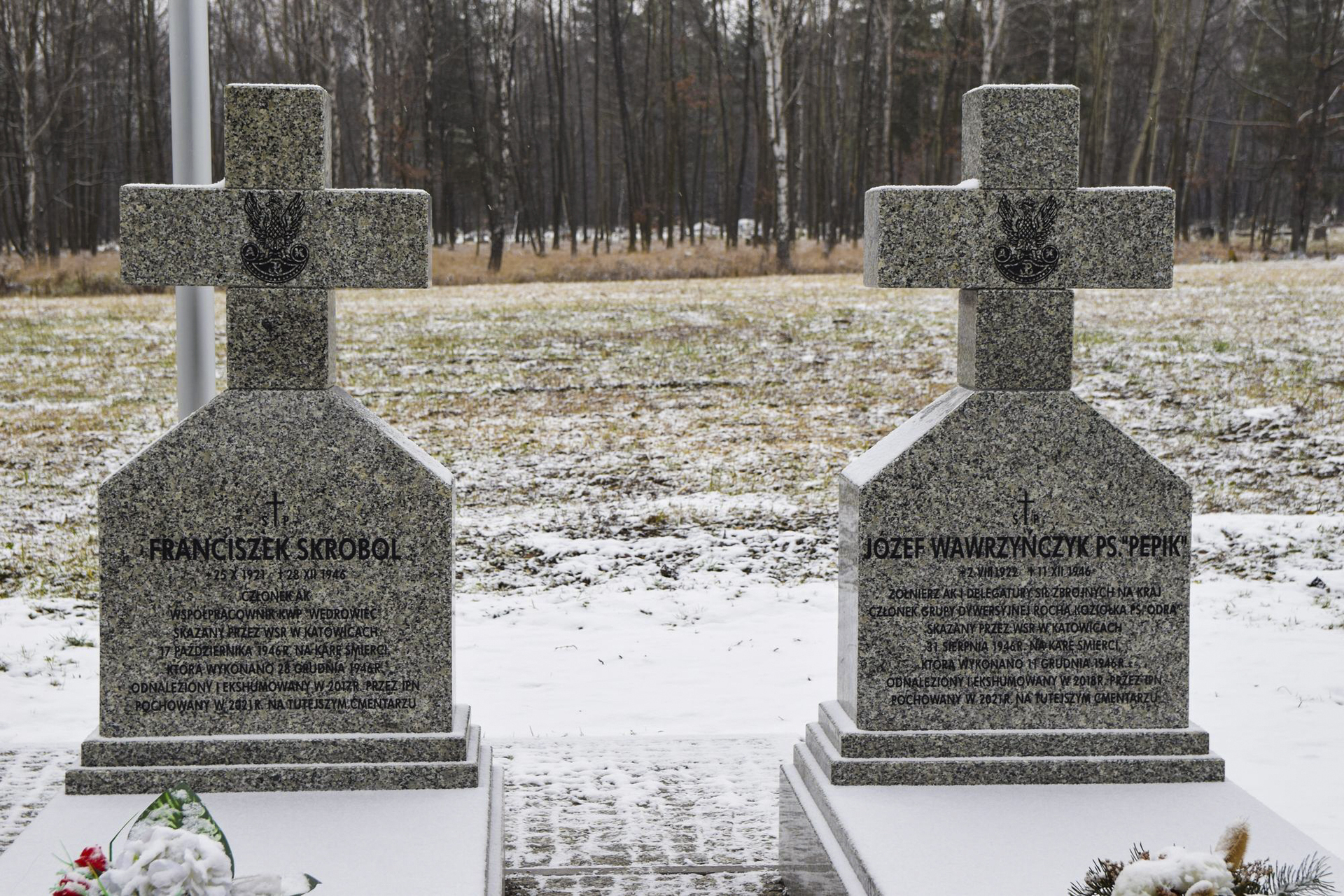Powstały one na miejscach pochówku żołnierzy podziemia niepodległościowego Franciszka Skrobola oraz Józefa Wawrzyńczyka, których szczątki zostały odnalezione przez IPN w 2017 i 2018 roku, a pochowane 16 września 2021 roku.