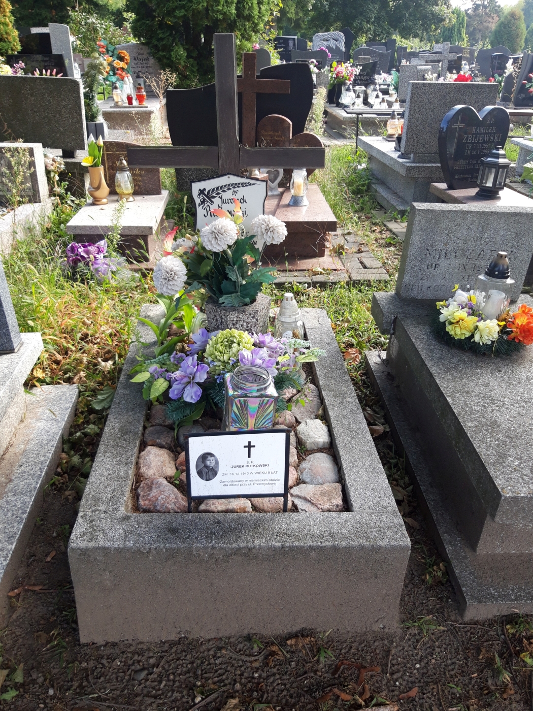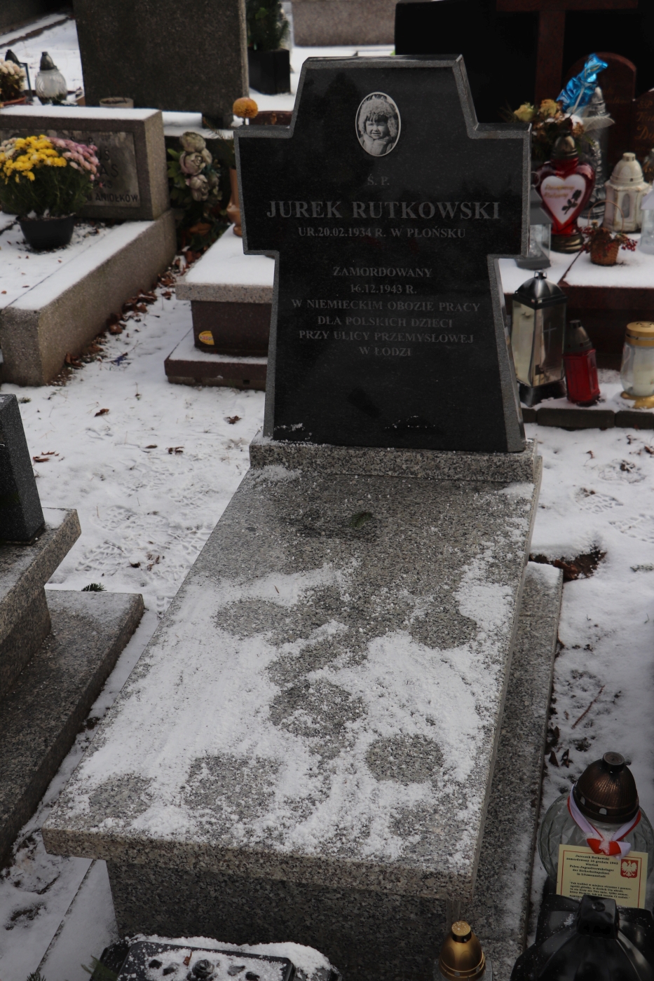 Informujemy, ze zakończyły się prace przy grobie wojennym Jurka Rutkowskiego, jednej z ofiar niemieckiego obozu dla dzieci polskich przy ul. Przemysłowej w Łodzi. Stary nagrobek (betonowa rama z drewnianym krzyżem) został zastąpiony współczesną, trwałą formą granitową. Prace zostały przeprowadzone za zgodą Łódzkiego Urzędu Wojewódzkiego w Łodzi i sfinansowane przez Oddziałowe Biuro Upamiętniania Walk i Męczeństwa IPN w Łodzi.