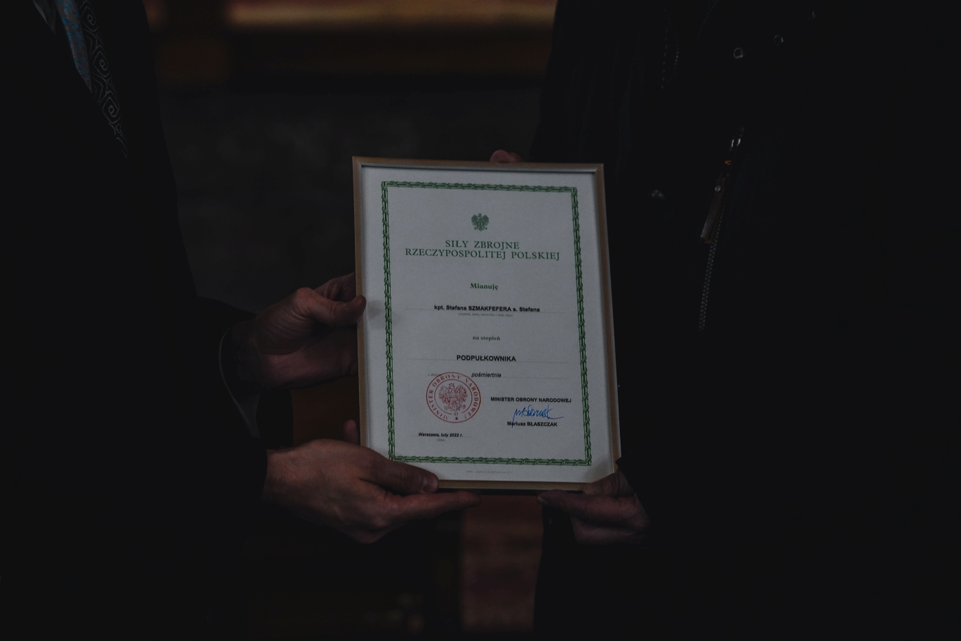 Wręczenie rodzinie aktu mianowania przez Ministra Obrony Narodowej na stopień podpułkownika rozpoczęło uroczystości upamiętniające Stefana Szmakfefera w Klasztorze Zakonu Braci Mniejszych Kapucynów w Zakroczymiu. Następnie odprawiona została msza św. w klasztornym kościele pw. św. Wawrzyńca.