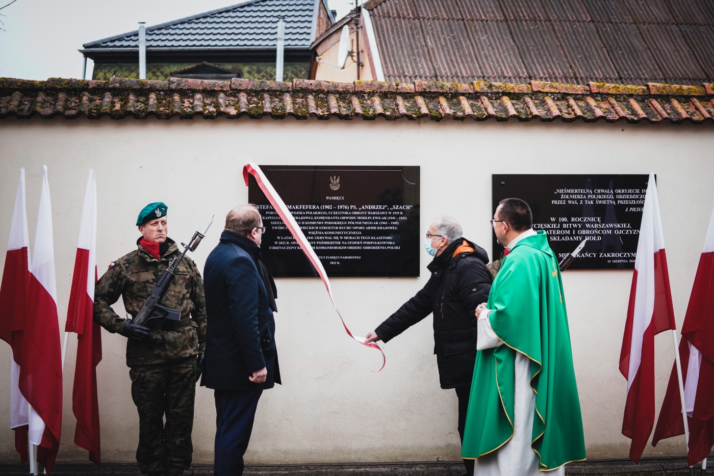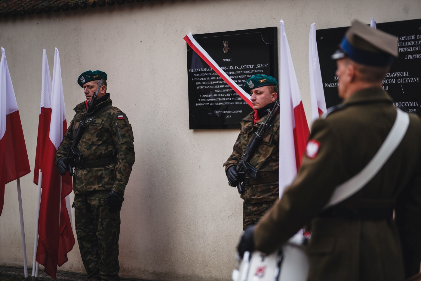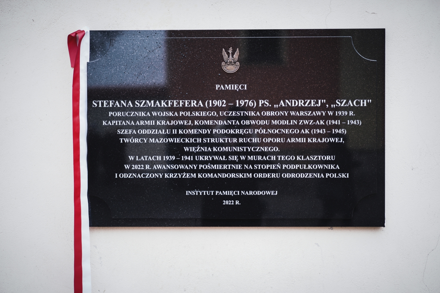 Następnie dyrektor BUWiM Adam Siwek wraz z przedstawicielem rodziny dr Maciejem Niemirko oraz Ministrem Prowincjalnym Zakonu Braci Mniejszych Kapucynów Prowincji Warszawskiej ojcem Łukaszem Woźniakiem odsłonili tablicę upamiętniającą ppłk. Stefana Szmakfefera, którą sfinansowało Oddziałowe Biuro Upamiętniania Walk i Męczeństwa IPN Warszawa. Na zakończenie delegacje złożyły wieńce a trębacz odegrał sygnał Śpij Kolego.