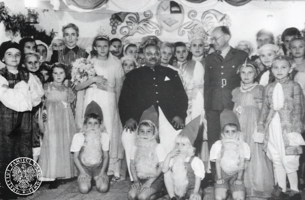 Dzieci z maharadżą w czasie przedstawienia. Zdjęcie pochodzące ze znajdującego się w zasobie Archiwum IPN w Warszawie zespołu: Koło Polaków z Indii 1942-1948 (fot. z zasobu IPN, sygn. IPN BU 4042/335).