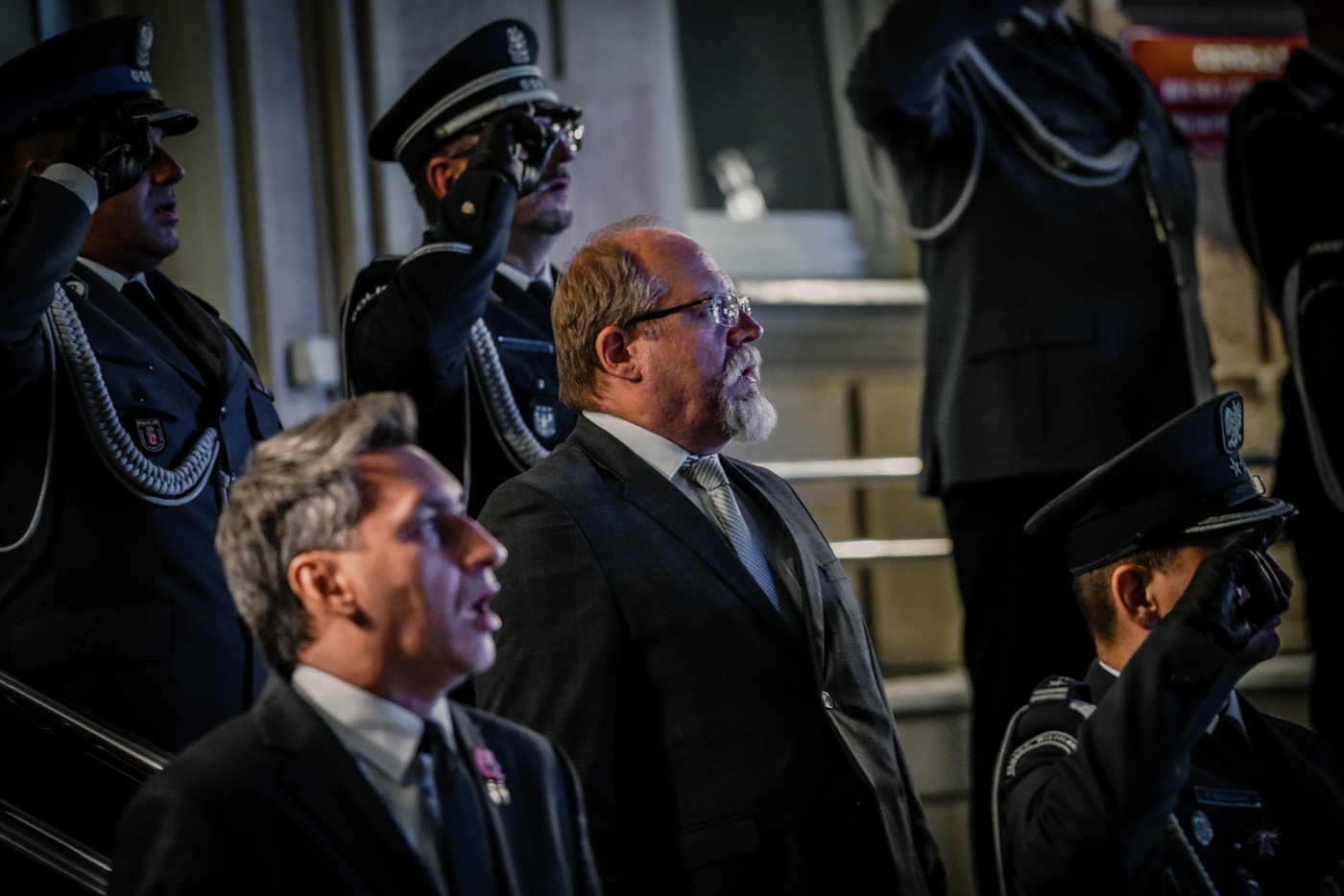 Centralne obchody zakończyła wyjątkowa prezentacja ukazująca archiwalne zdjęcia z prac ekshumacyjnych i budowy cmentarza w rosyjskiej wsi Miednoje, odtworzona na telebimie przy akompaniamencie przygotowanej na to wydarzenie piosenki, skomponowanej przez funkcjonariusza Policji.