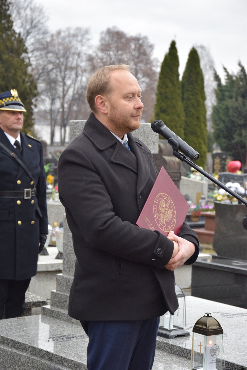 Instytut Pamięci Narodowej reprezentował Jan Kwaśniewicz naczelnik OBUWiM w Katowicach, który poprowadził uroczystość. Po przywitaniu gości przybliżył zgromadzonym genezę akcji „Powstańcy to wiara, nadzieja i cud! Ocalmy groby powstańców śląskich od zapomnienia” oraz symbolikę znaku pamięci „Tobie Polsko”. Następnie głos zabrał Zbigniew Byszewski i prof. Dariusz Nawrot. Podczas uroczystości życiorys powstańca przedstawiła Danuta Mikoda - pracownik OBUWiM w Katowicach. Następnie Jan Kwaśniewicz dokonał oznaczenia grobu, a uczestnicy złożyli kwiaty i zapalili znicze.