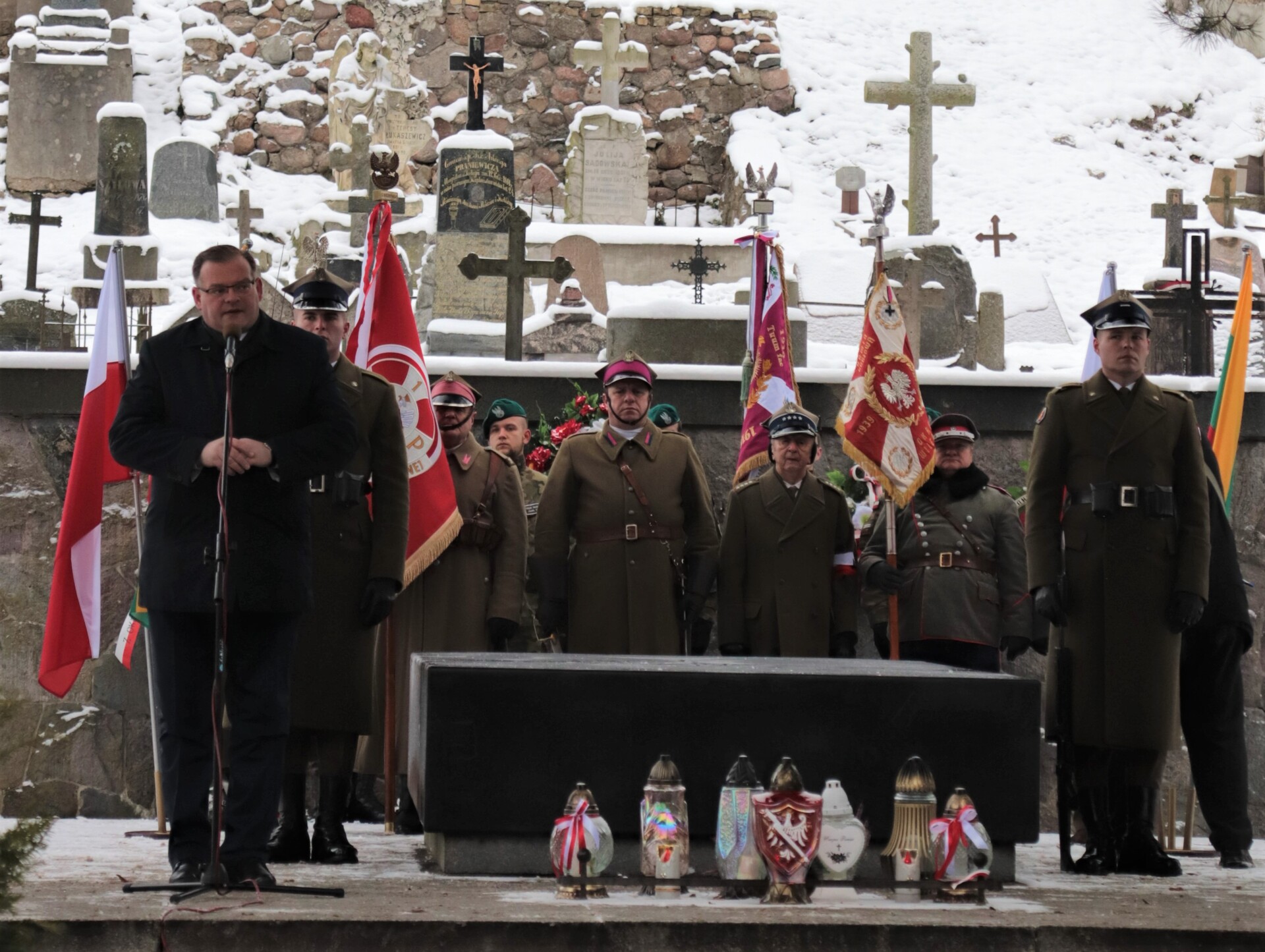 W uroczystości organizowanej przez Urząd do Spraw Kombatantów i Osób Represjonowanych wzięła udział Ambasador RP na Litwie Pani Urszula Doroszewska. W skład licznej delegacji przybyłej z Polski weszli m. in. marszałek senior Sejmu RP Pan Antoni Macierewicz, który odczytał list marszałek Elżbiety Witek oraz Łukasz Kudlicki, szef gabinetu politycznego ministra obrony narodowej, który z kolei odczytał list szefa MON, wicepremiera Mariusza Błaszczaka. Minister Jan Józef Kasprzyk w swoim wystąpieniu przypomniał, jak wielką rolę w kształtowaniu postawy przyszłego ojca niepodległości miała twórczość Juliusza Słowackiego, czerpiąc z jej przesłania marszałek „rozumiał Polskę, jako kraj ludzi wolnych, niepodległych, suwerennych. W tym sensie traktował Polskę jako antytezę Rosji, którą uważał za dom niewoli”. Pani Ambasador przemawiając zwróciła uwagę, że niezależnie od sporów polsko-litewskich po 1918 r., to odrodzenie państwa polskiego i obrona jego niepodległości w 1920 r. zapewniła Litwie 20 lat wolności – inaczej Litwa podzieliłaby losy Gruzji czy Ukrainy.