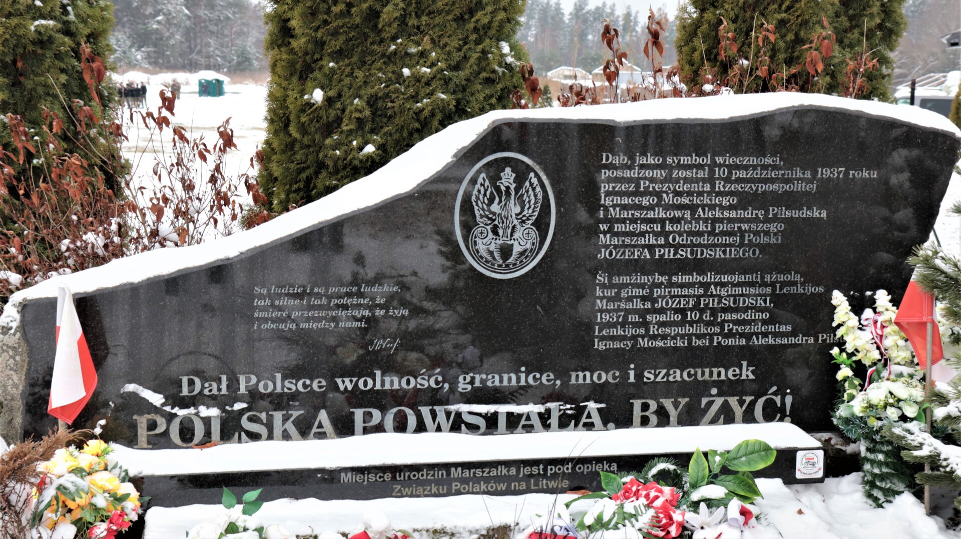 Główne uroczystości tego dnia miały miejsce w Zułowie. Teren dawnego majątku Piłsudskich oczekiwał na gości przykryty całunem śniegu przecinanym gdzieniegdzie przez tropy zajęcy i saren. Pomimo pięciostopniowego mrozu bardzo liczne grono Polaków ze wzruszeniem zebrało się przy dębie zasadzonym 10 października 1937 r. przez Prezydenta RP Ignacego Mościckiego i wdowę po marszałku Aleksandrę Piłsudską na pamiątkę tego, który „dał Polsce wolność, granice, moc i szacunek”. Dwór, w którym 5 grudnia 1867 r. przyszedł na świat Józef Piłsudski, spłonął całkowicie w 1875 r. Rodzina Piłsudskich zamieszkała w ocalałej oficynie, a w krótce przeniosła do Wilna, zaś majątek Zułowo sprzedano. W 1934 r. został odkupiony z prywatnych rąk przez Związek Rezerwistów, a teren zagospodarowano wg projektu prof. Romualda Gutta. II wojna światowa i rządy sowieckie przyniosły całkowitą dewastację terenu, na którym założono sowchoz. Po odrodzeniu niepodległej Litwy ok. 4 ha terenu z fundamentami dworu nabył i zabezpieczył Związek Polaków na Litwie.