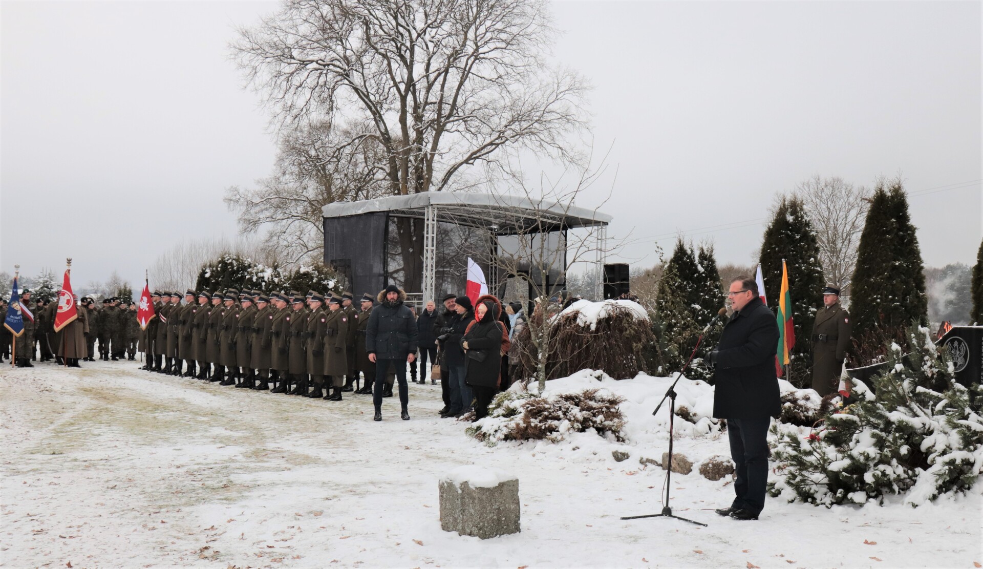 Po części oficjalnej uczestnicy z radością zebrali się wokół ognisk, przy których można było się ogrzać oraz zjeść prosty ciepły posiłek przygotowany przez członków Związku Polaków na Litwie. Na uznanie za wytrwałość szczególnie zasłużyli młodzi strzelcy z Jednostki Strzeleckiej 2051 w Sędziszowie Małopolskim. W ciągu dwóch dni obchodów Wojskową Asystę Honorową zapewniał pododdział z Pułku Reprezentacyjnego Garnizonu Warszawa.