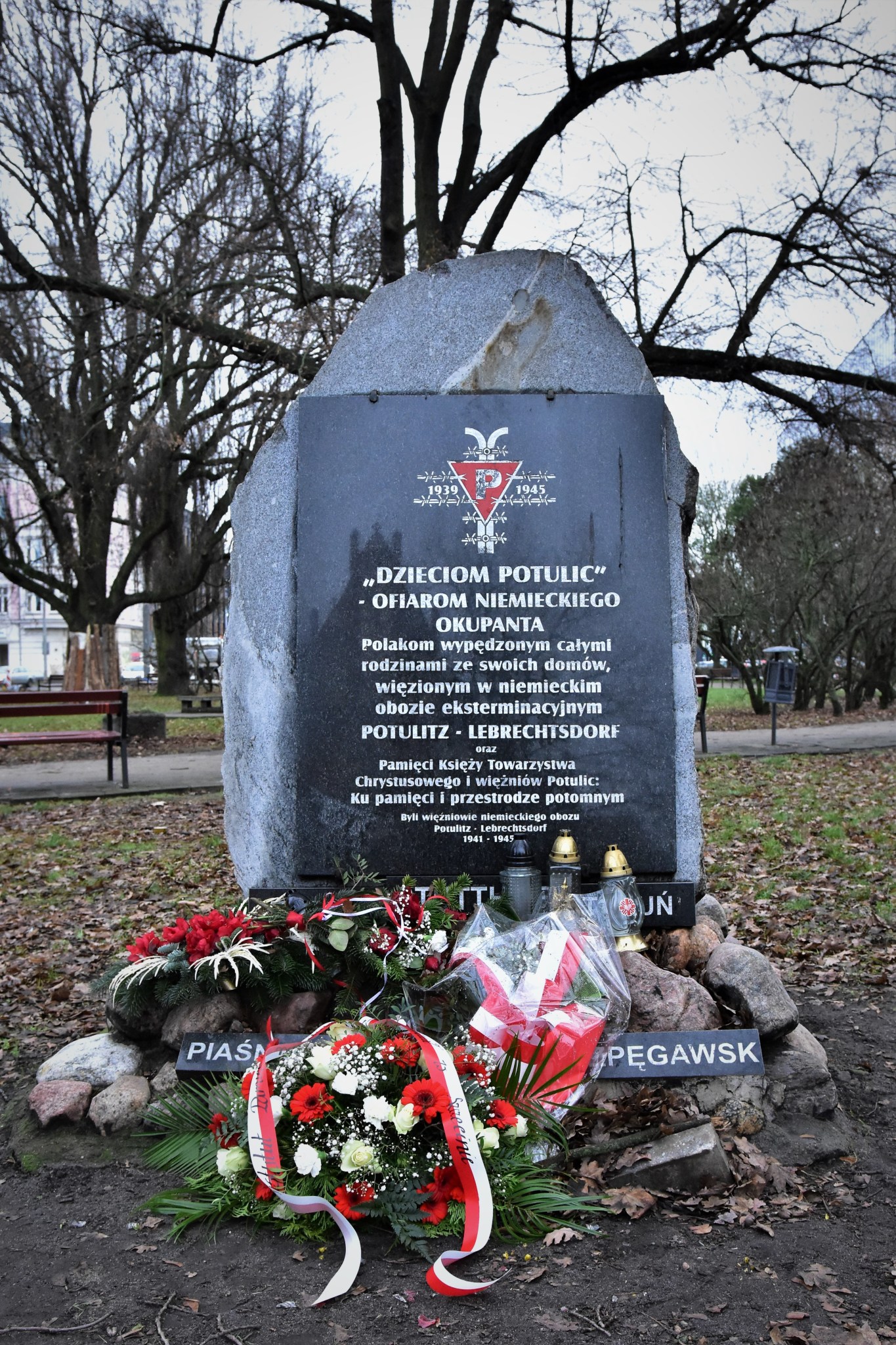 - Następnie zostały złożone kwiaty pod pomnikiem poświeconym ofiarom niemieckiego obozu przesiedleńczego w Potulicach przy pomniku „Dzieciom Potulic”.