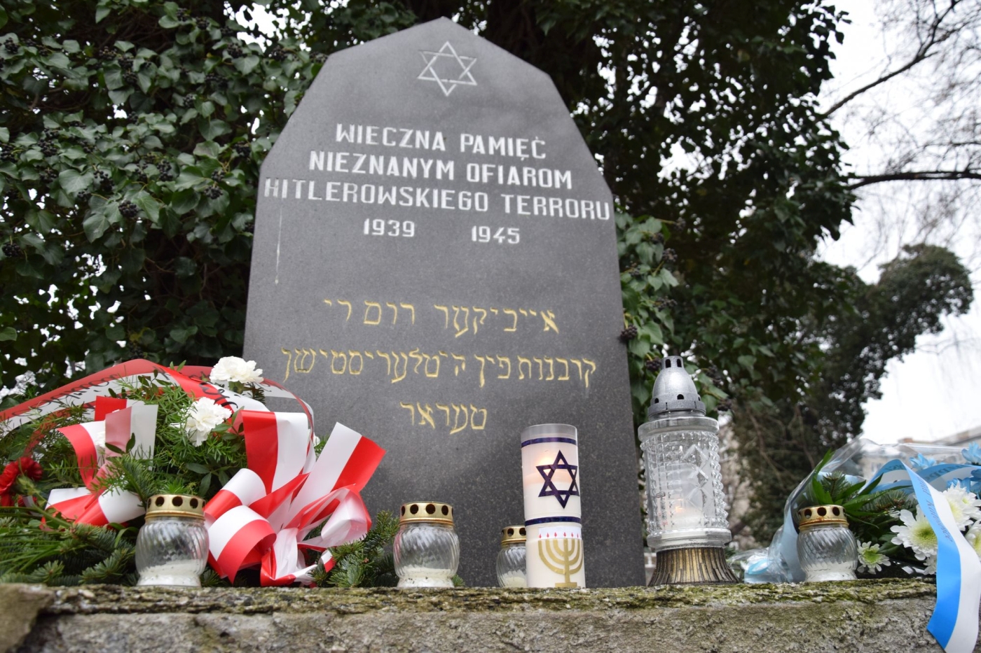 Przy symbolicznym grobie ofiar niemieckiego terroru, na którym upamiętniono między innymi członków rodzin: Goldschmidt, Rusinek, Lipman, Rajfer, Sapir i Mandelkier. W trakcie uroczystości głos zabrali p. Paweł Grabiec oraz p. Jan Kwaśniewicz. W przemówieniach przywołali historię święta oraz wydarzenia z 27 stycznia 1945 r. w KL Auschwitz. Następnie złożono kwiaty, zapalono znicze i odmówiono tradycyjną żydowską modlitwę.