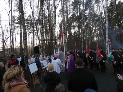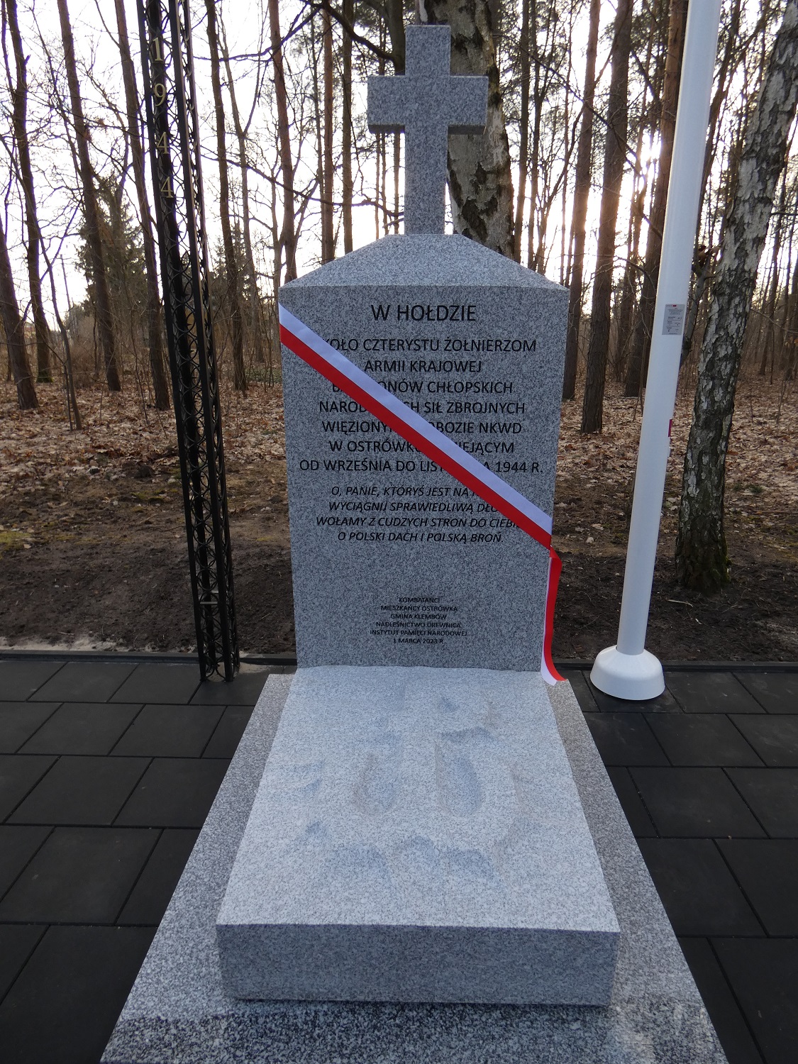 Tam został odsłonięty i poświęcony nowy pomnik upamiętniający więźniów obozu NKWD w Ostrówku.. Ceremonii towarzyszyła prelekcja historyczna dr. Tomasza Łabuszewskiego, dyrektora warszawskiego oddziału IPN oraz krótke wystapienia innych gości. Na zakończenie uroczystoci delegacje złożyły wieńce pod upamiętnieniem.