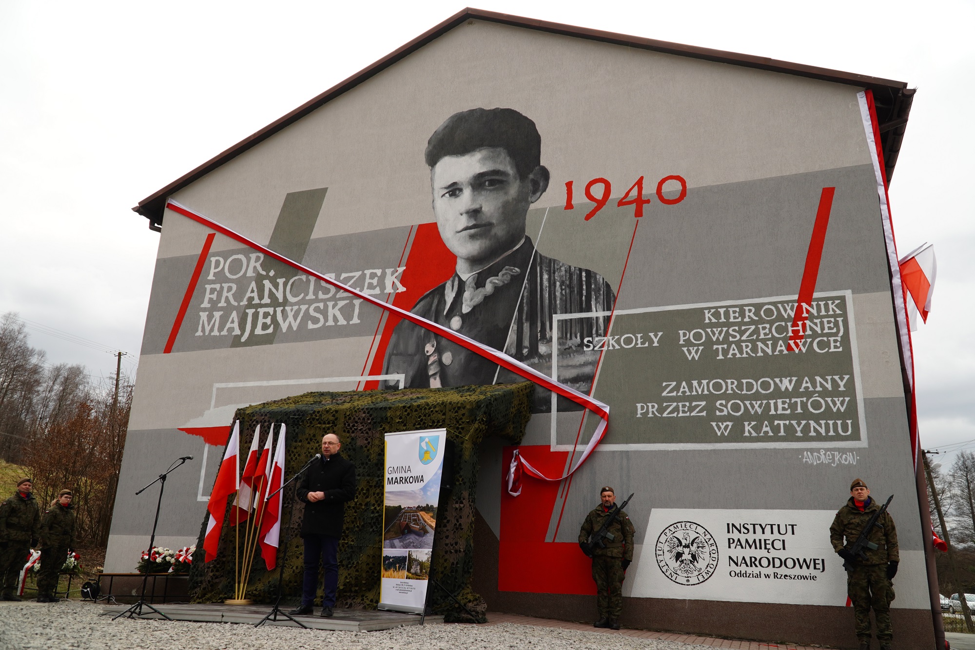 Uroczystości odsłonięcia muralu upamiętniającego por. Franciszka Majewskiego – Tarnawka, 5 marca 2023