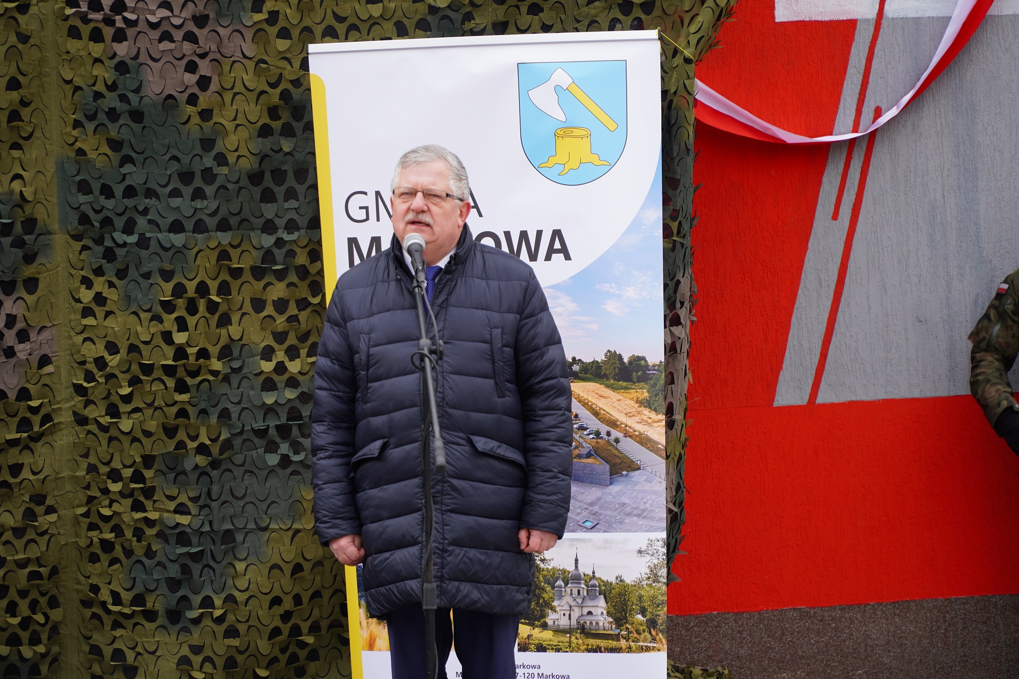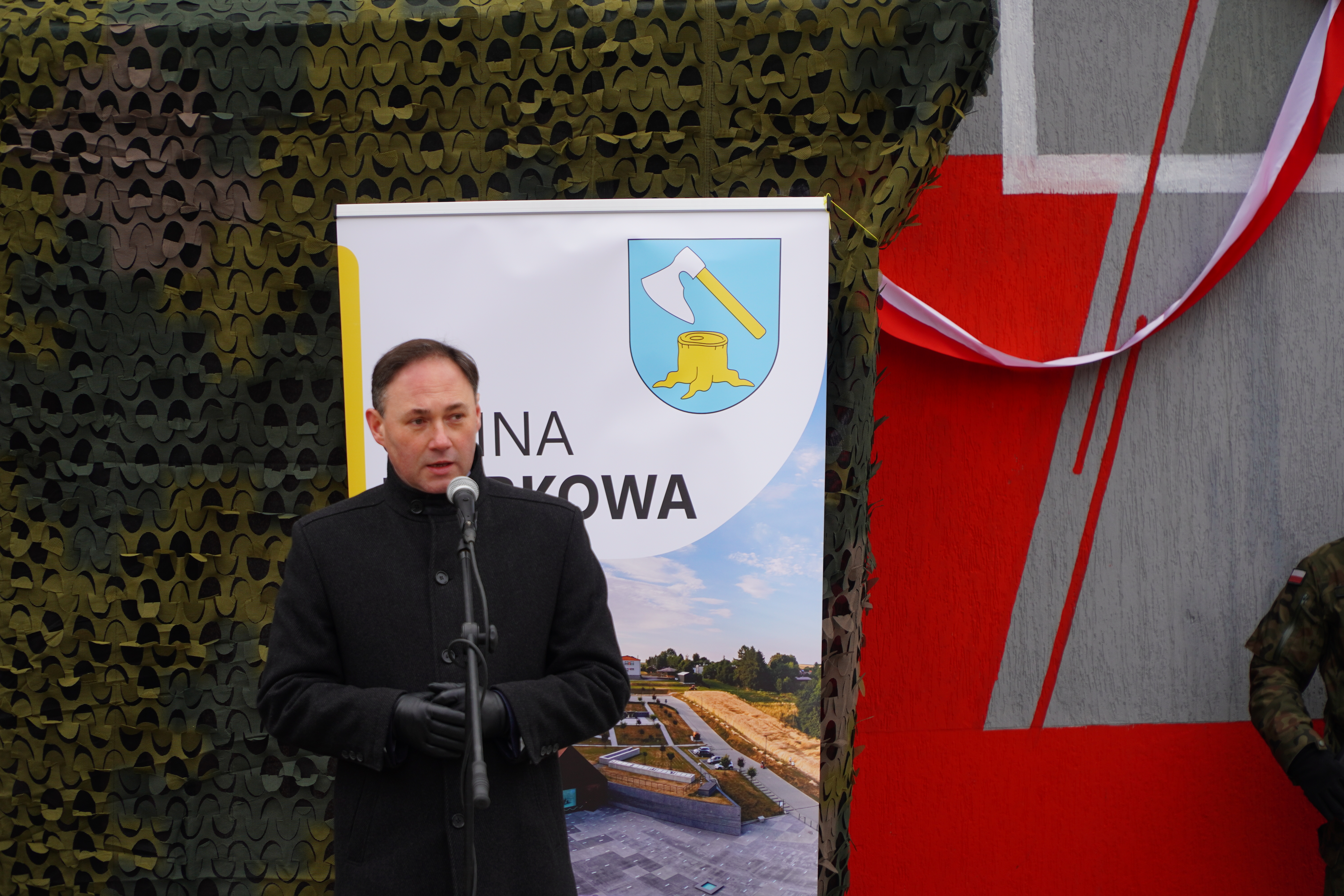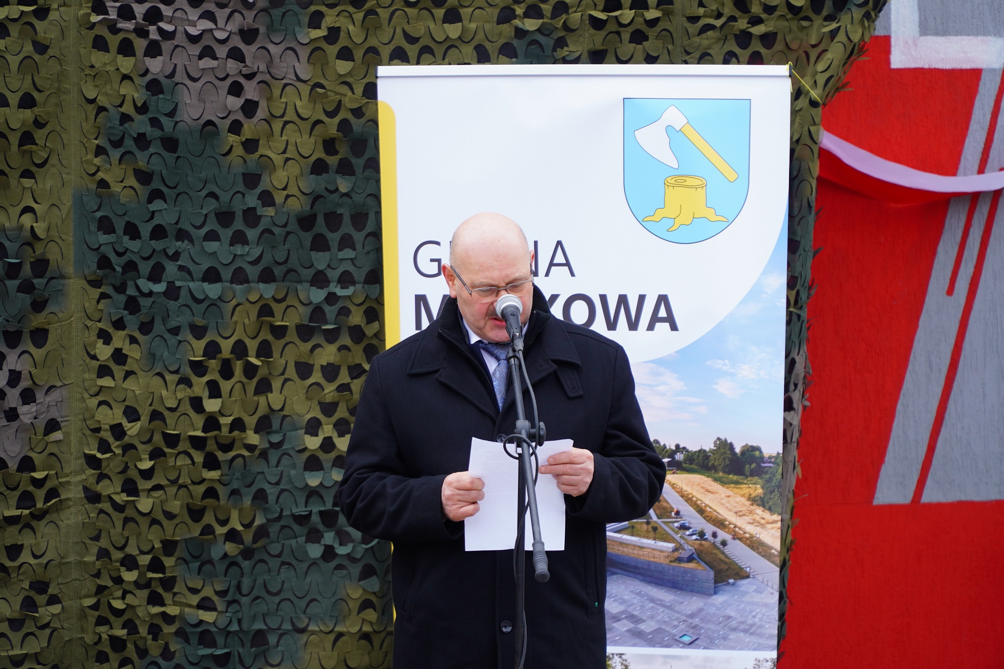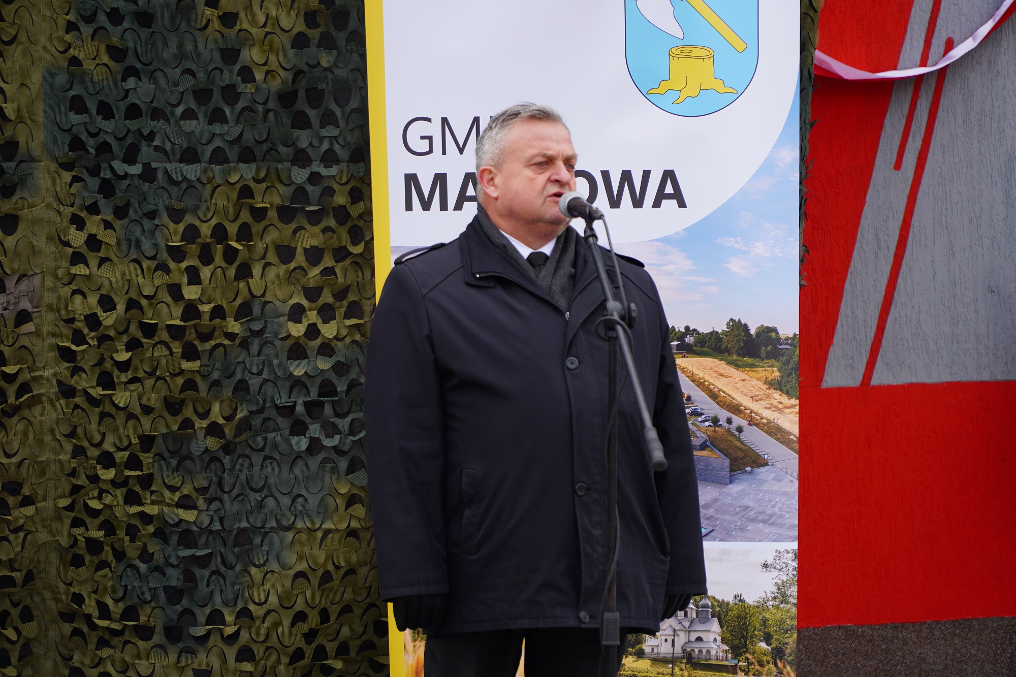 Mirosław Mac, wójt Gminy Markowa na uroczystości poświęcenia i odsłonięcia muralu upamiętniającego por. Franciszka Majewskiego – Tarnawka, 5 marca 2023. Fot. Marcin Bukała (IPN)