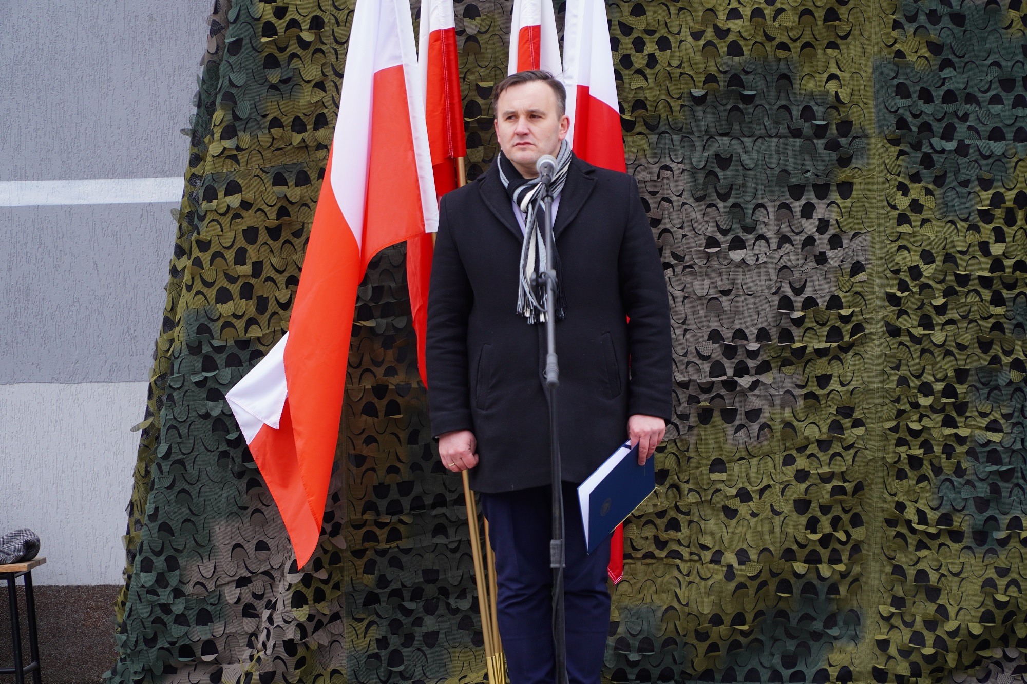 Dr Mateusz Szpytma, zastępca prezesa IPN na uroczystości odsłonięcia muralu upamiętniającego por. Franciszka Majewskiego – Tarnawka, 5 marca 2023. Fot. Marcin Bukała (IPN)