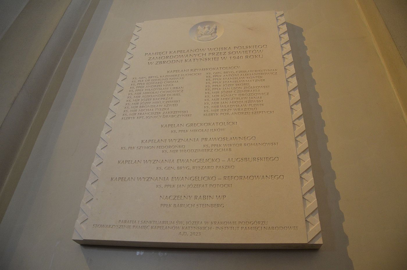 IPN, obok Stowarzyszenia Pamięć Kapelanów Katyńskich oraz parafii, jest fundatorem tego upamiętnienia. Instytut reprezentowała zastępca dyrektora oddziału w Krakowie Cecylia Radoń. Podczas składania kwiatów pod tablicą towarzyszył jej Adam Macedoński, krakowski działacz niepodległościowy, kawaler Orderu Orła Białego, Kustosz Pamięci Narodowej, który w 1978 r. – wbrew władzom PRL – założył niezależny Instytut Katyński.