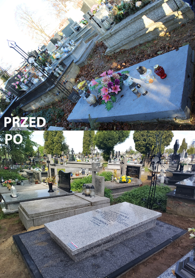 Zakres prac obejmował oczyszczenie i pomalowanie istniejącego krzyża, wykonanie nowej płyty poziomej z granitu wraz z inskrypcją, a także wykonanie opaski z kostki dookoła pomnika.