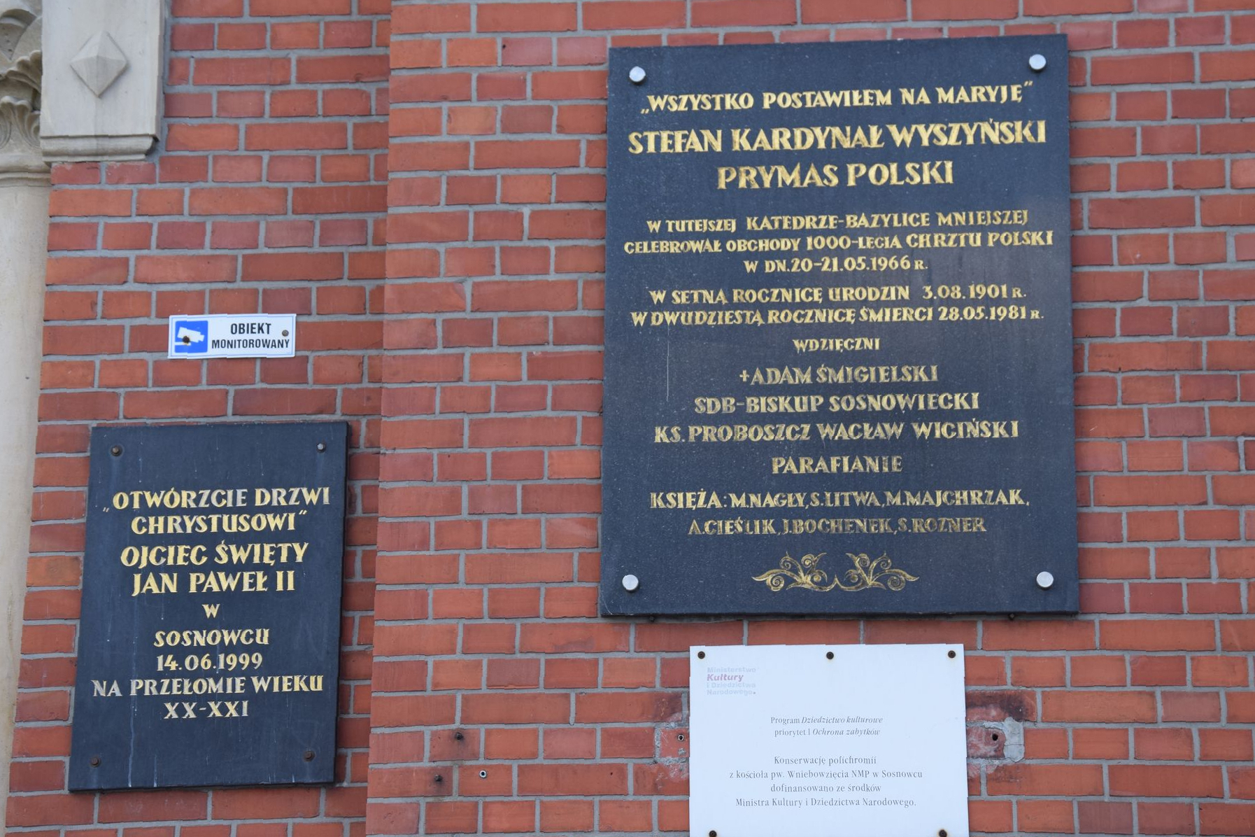 - uroczystościom Milenium Chrztu Polski z 21 maja 1967 roku, w których uczestniczyli Prymas Polski Stefan Wyszyński i Arcybiskup Karol Wojtyła. - Pomnik poświęcony pamięci funkcjonariuszy służb mundurowych, urzędników państwowych i samorządowych, którzy poświęcili swe życie w służbie dla Ojczyzny – plac katedry Wniebowzięcia Najświętszej Maryi Panny w Sosnowcu.