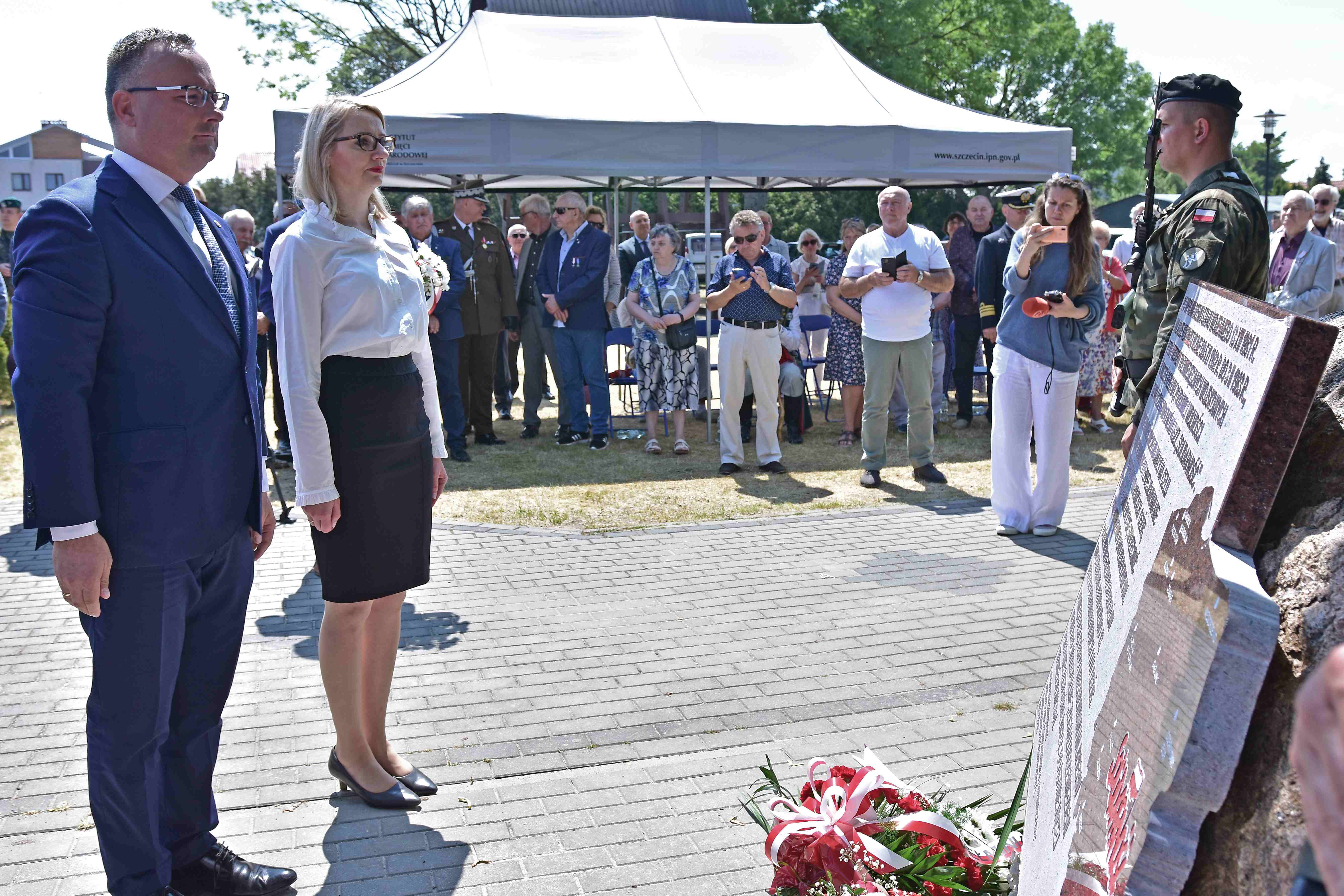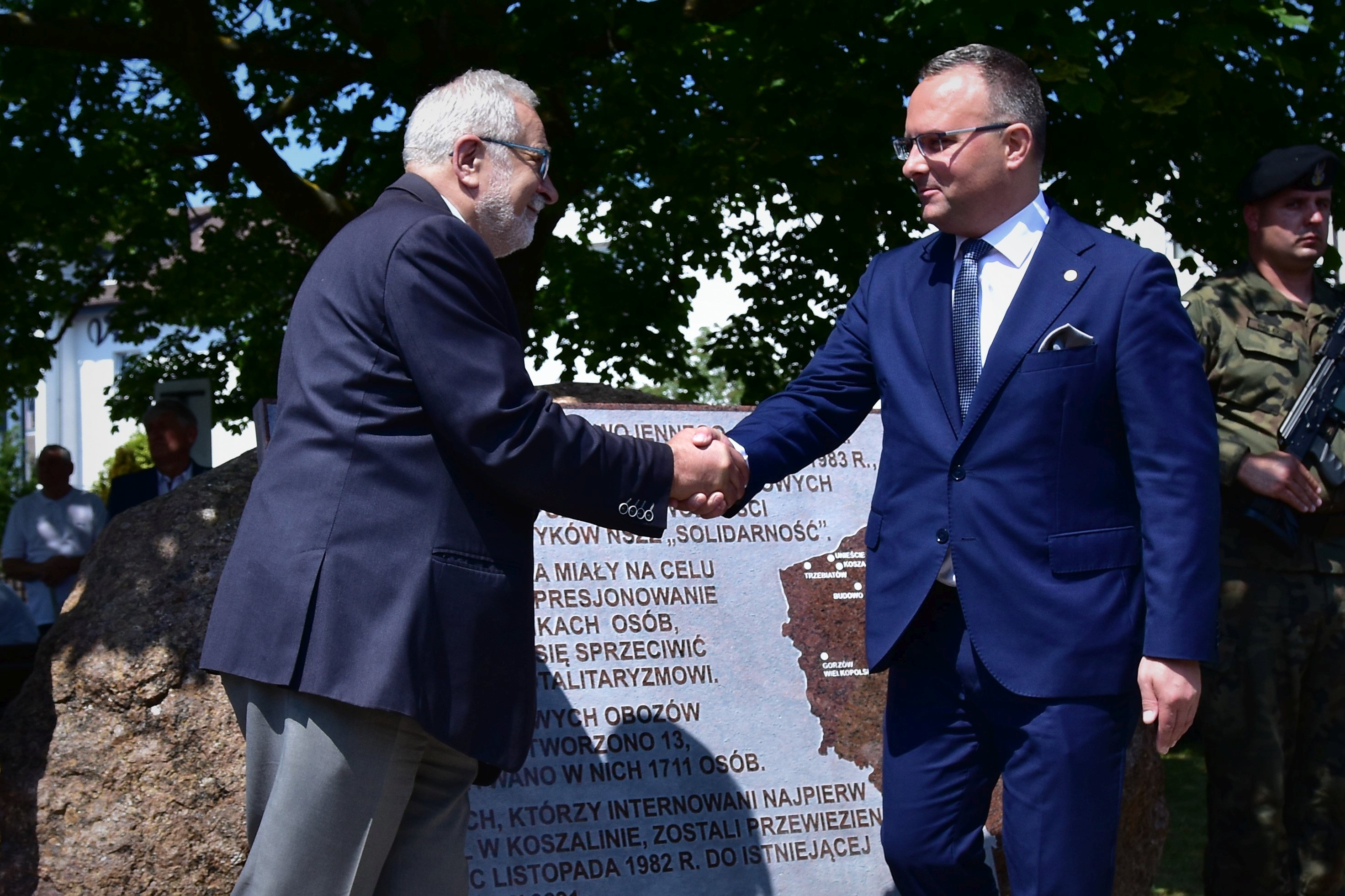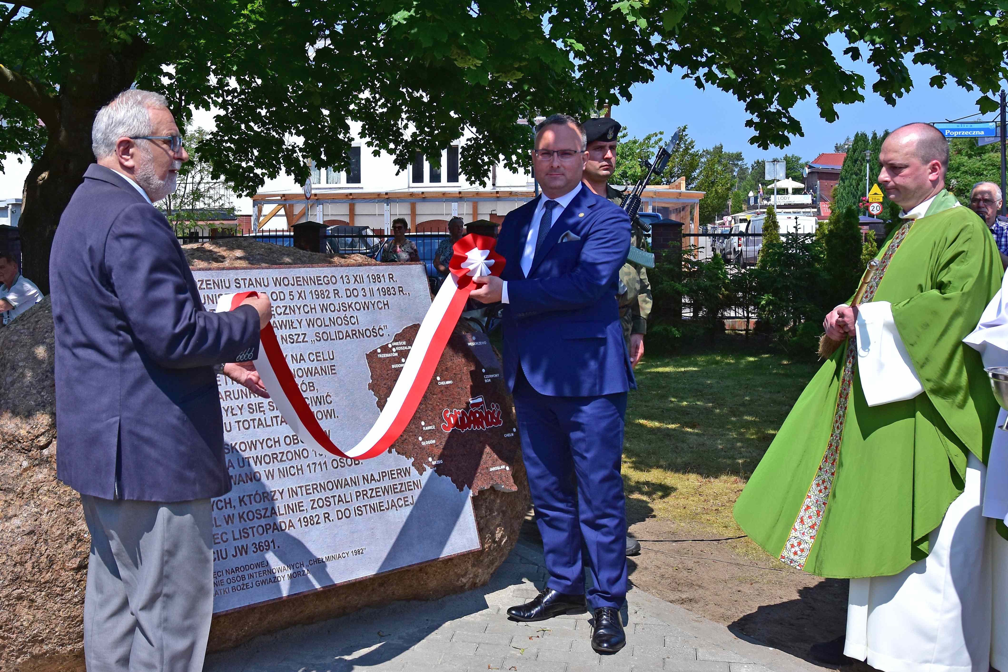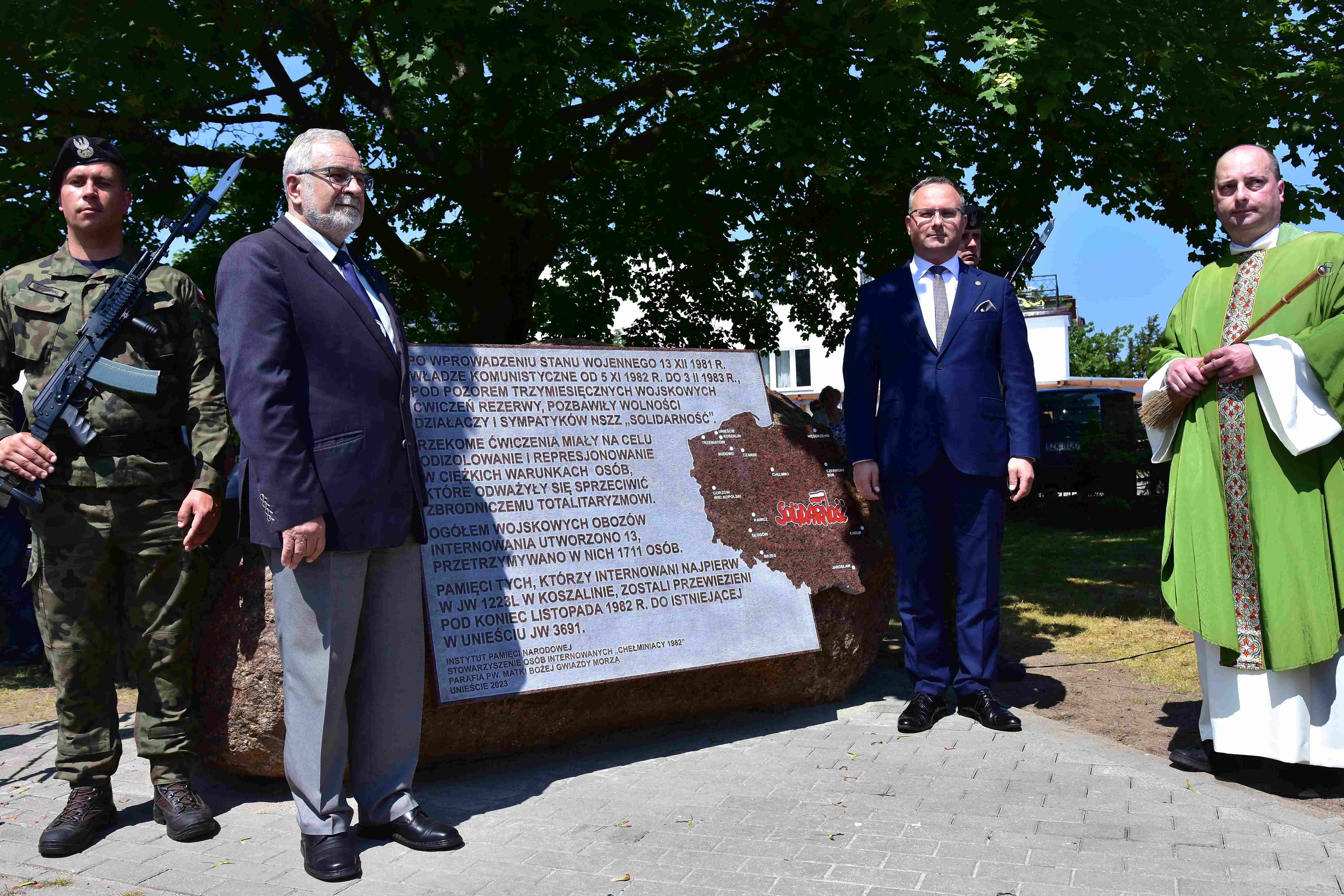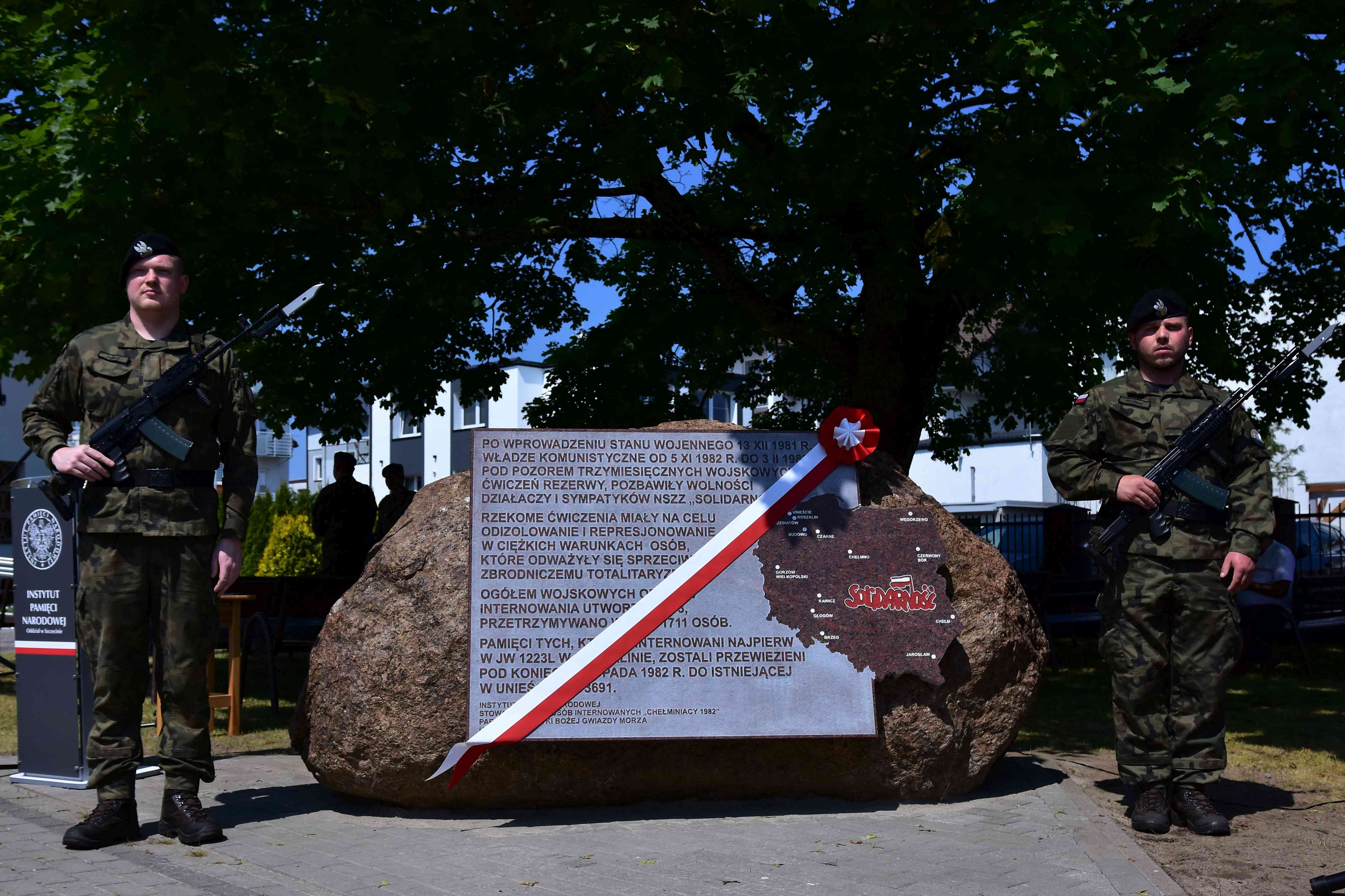 Po przemówieniach nastąpiło odsłonięcie tablicy, którego dokonali Krzysztof Męciński dyrektor Instytutu Pamięci Narodowej o. w Szczecinie oraz Andrzej Adamczyk Przewodniczący Stowarzyszenia Osób Internowanych "Chełminiacy 1982".
