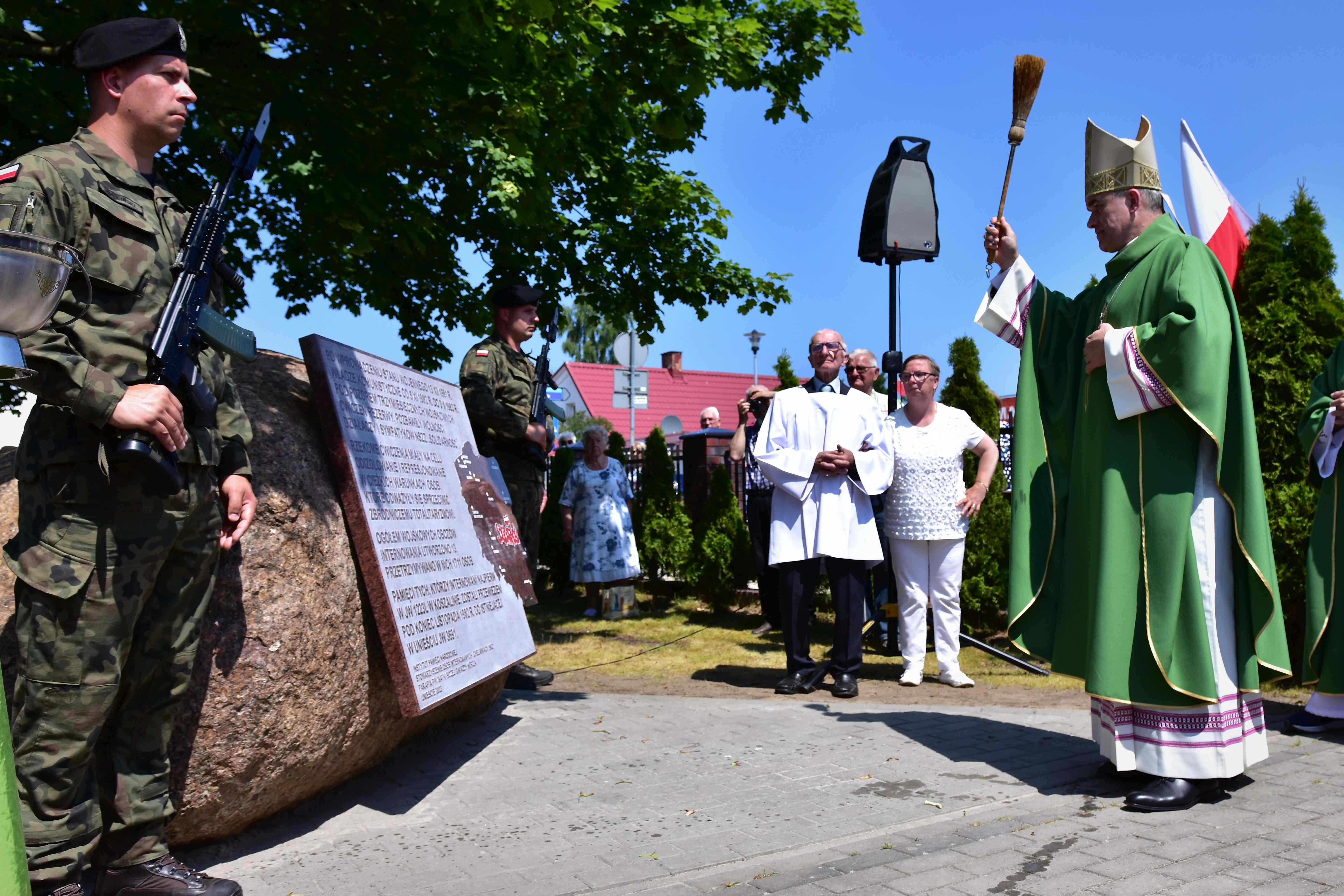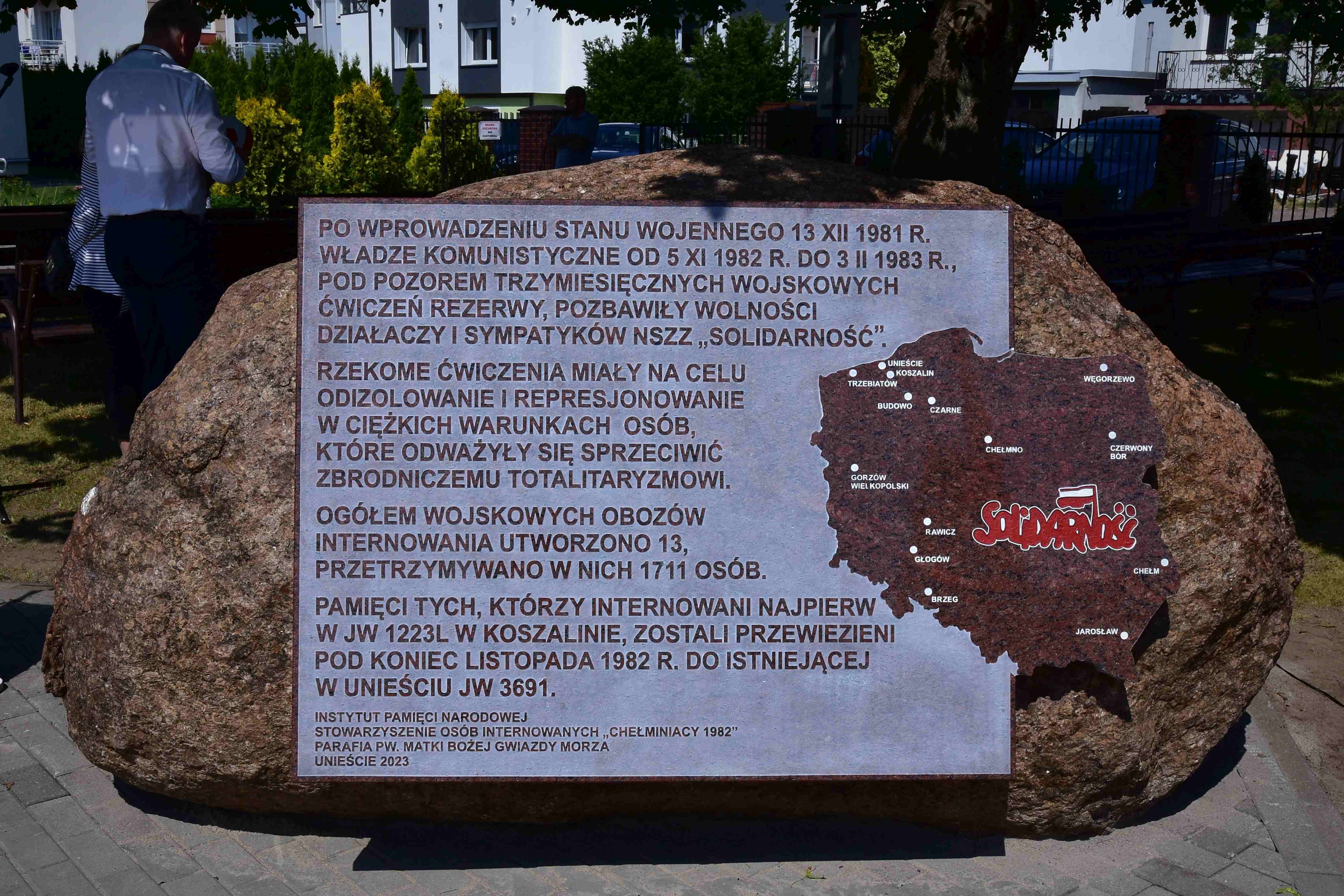 Po liturgii uczestnicy wzięli udział w odsłonięciu tablicy upamiętniającej internowanie w Wojskowym Obozie Internowania w Unieściu Członków i Sympatyków NSZZ "Solidarność".