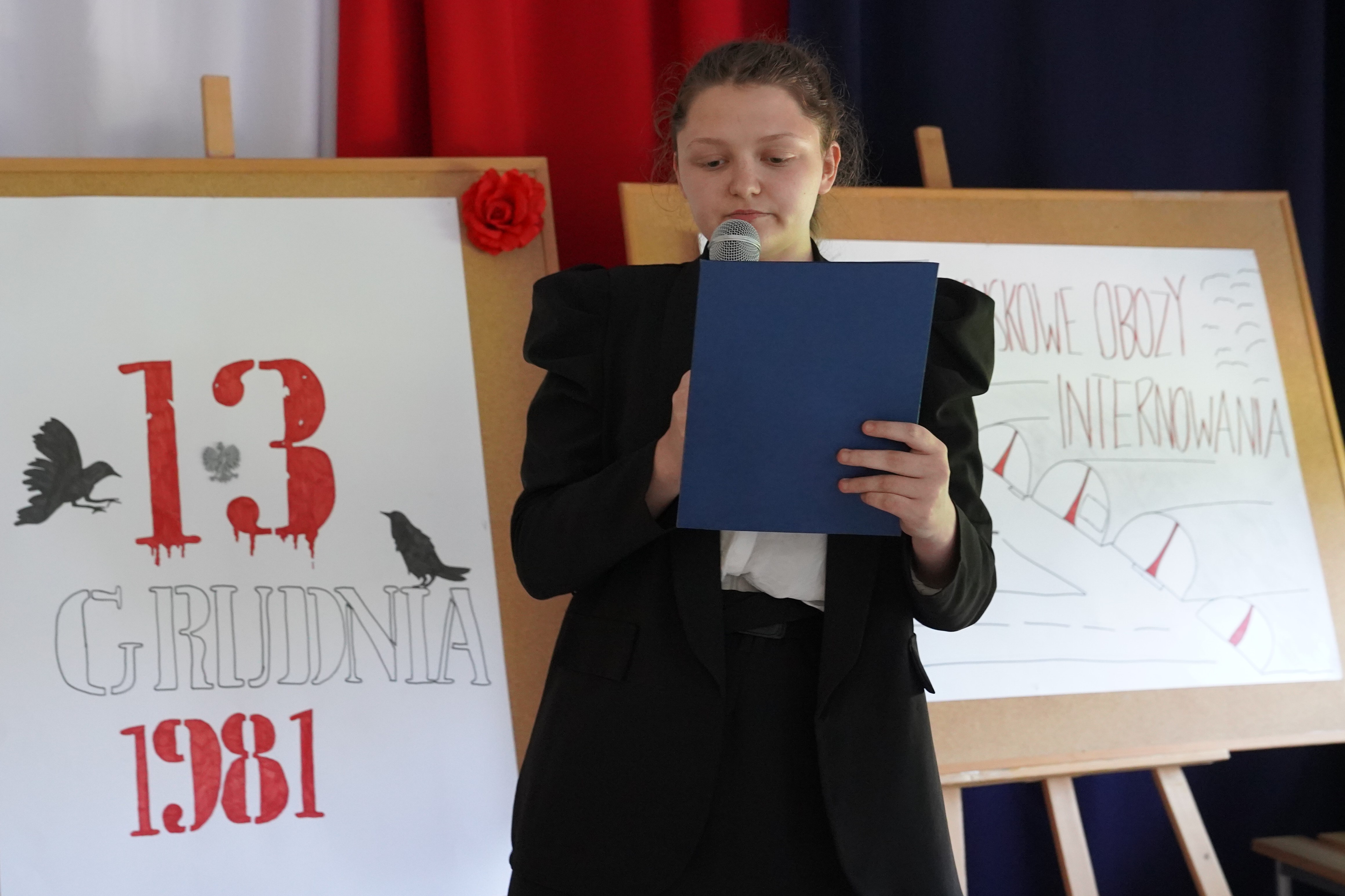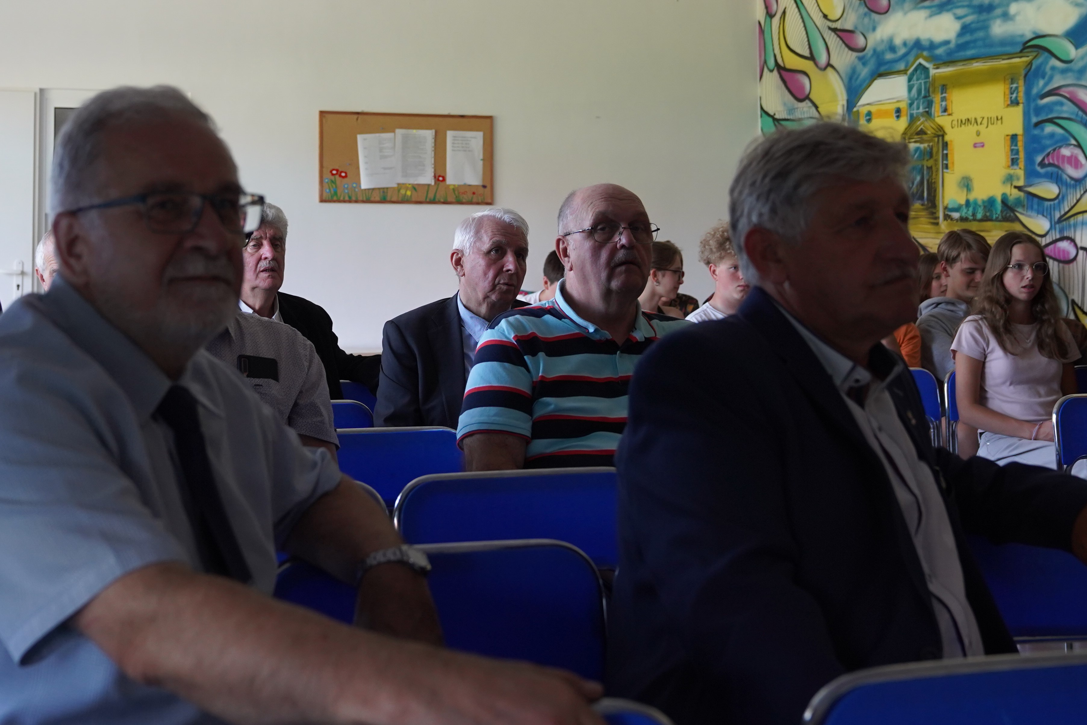 Po uroczystym odsłonięciu pamiątkowej tablicy, świadkowie historii udali się na spotkanie z uczniami 8 klasy ze Szkoły Podstawowej im. Leonida Teligi. Uczniowie z zainteresowaniem wysłuchali wspomnień z Wojskowych Obozów Internowania oraz obejrzeli fragment filmu pt. „Podeptana godność”, przygotowanego w 2022 r. z okazji 40. rocznicy internowania Członków i Sympatyków NSZZ „Solidarność” w WOI. Spotkanie moderował dr Sebastian Kaniewski ze szczecińskiego oddziału IPN.