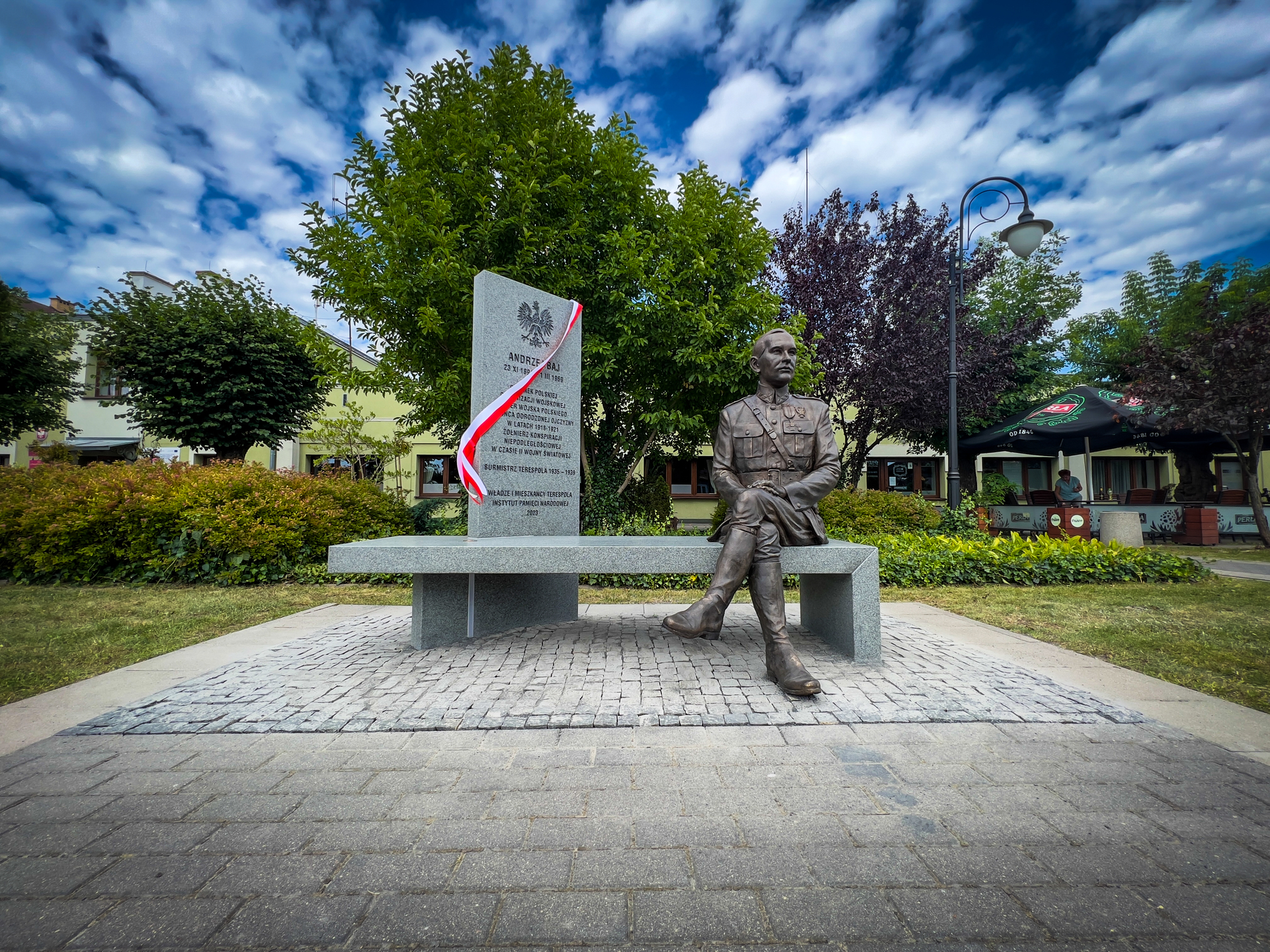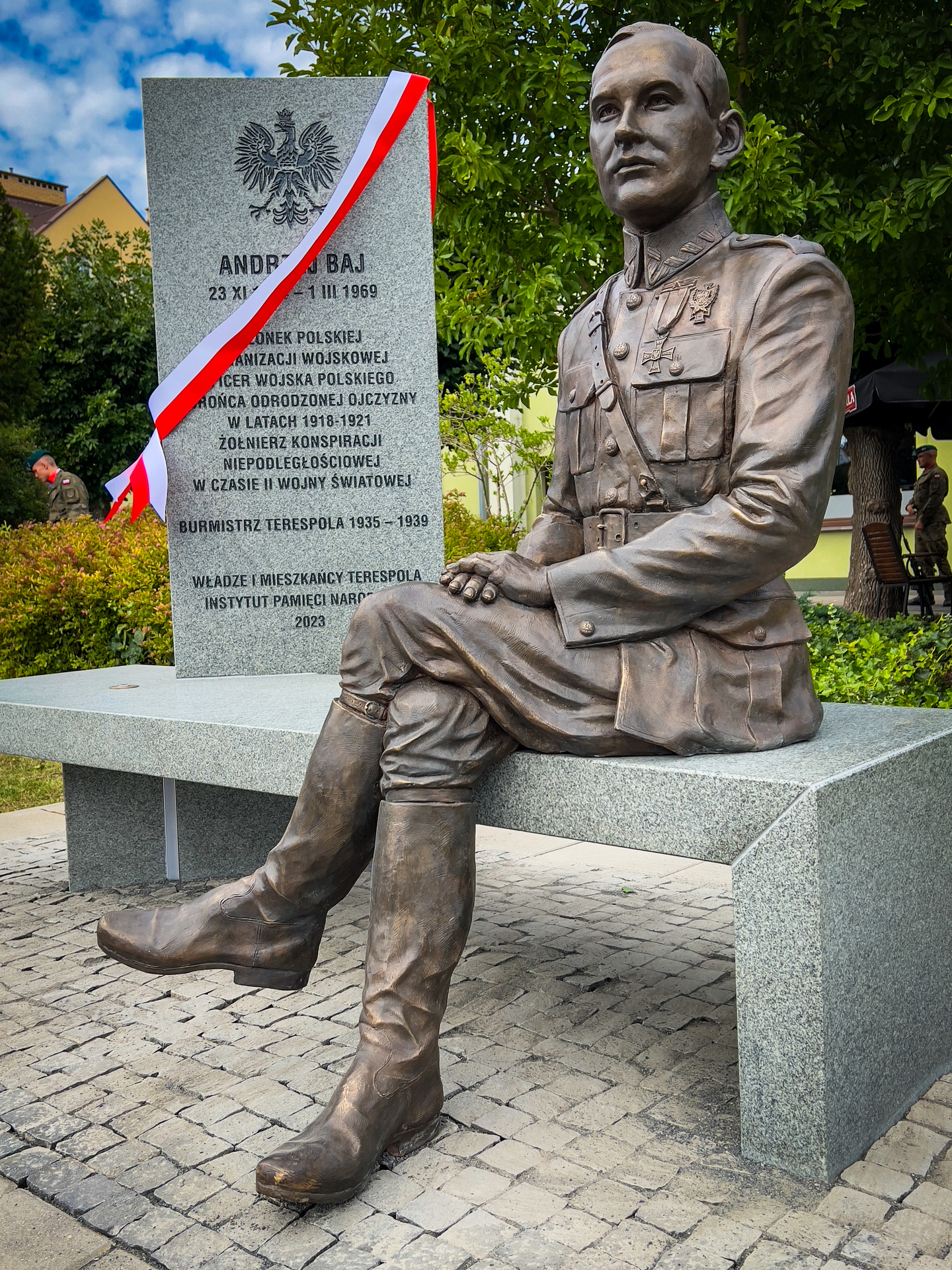 W miejsce usuniętego w ubiegłym roku sowieckiego obiektu propagandowego upamiętniającego Armię Czerwoną, Biuro Upamiętniania Walk i Męczeństwa IPN sfinansowało wykonanie ławeczki multimedialnej. Chcemy propagować wiedzę o Andrzeju Baju i wierzymy, że nowoczesna forma upamiętnienia przyczyni się do umacniania pamięci o żołnierzu Wojska Polskiego i byłym burmistrzu Terespola.