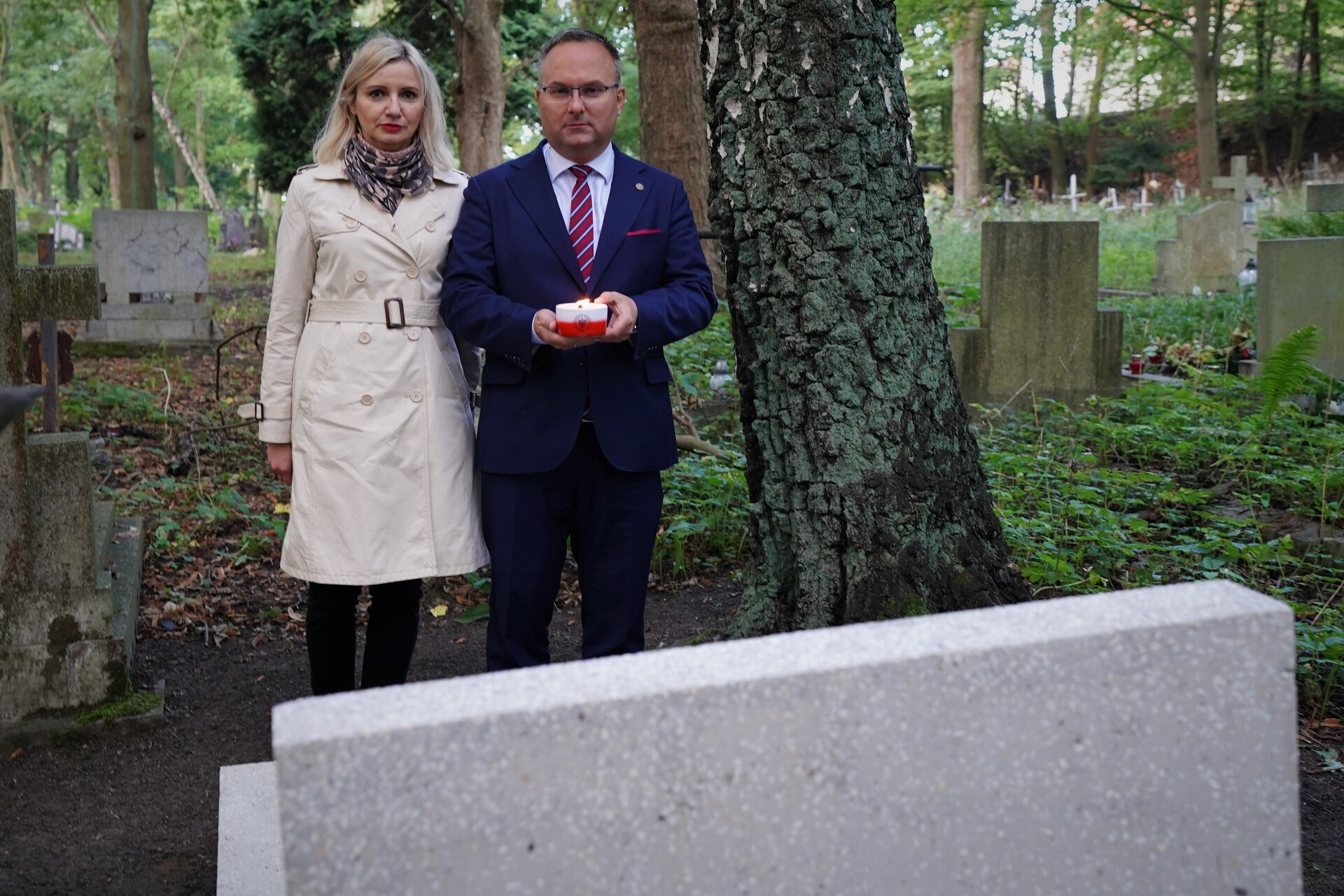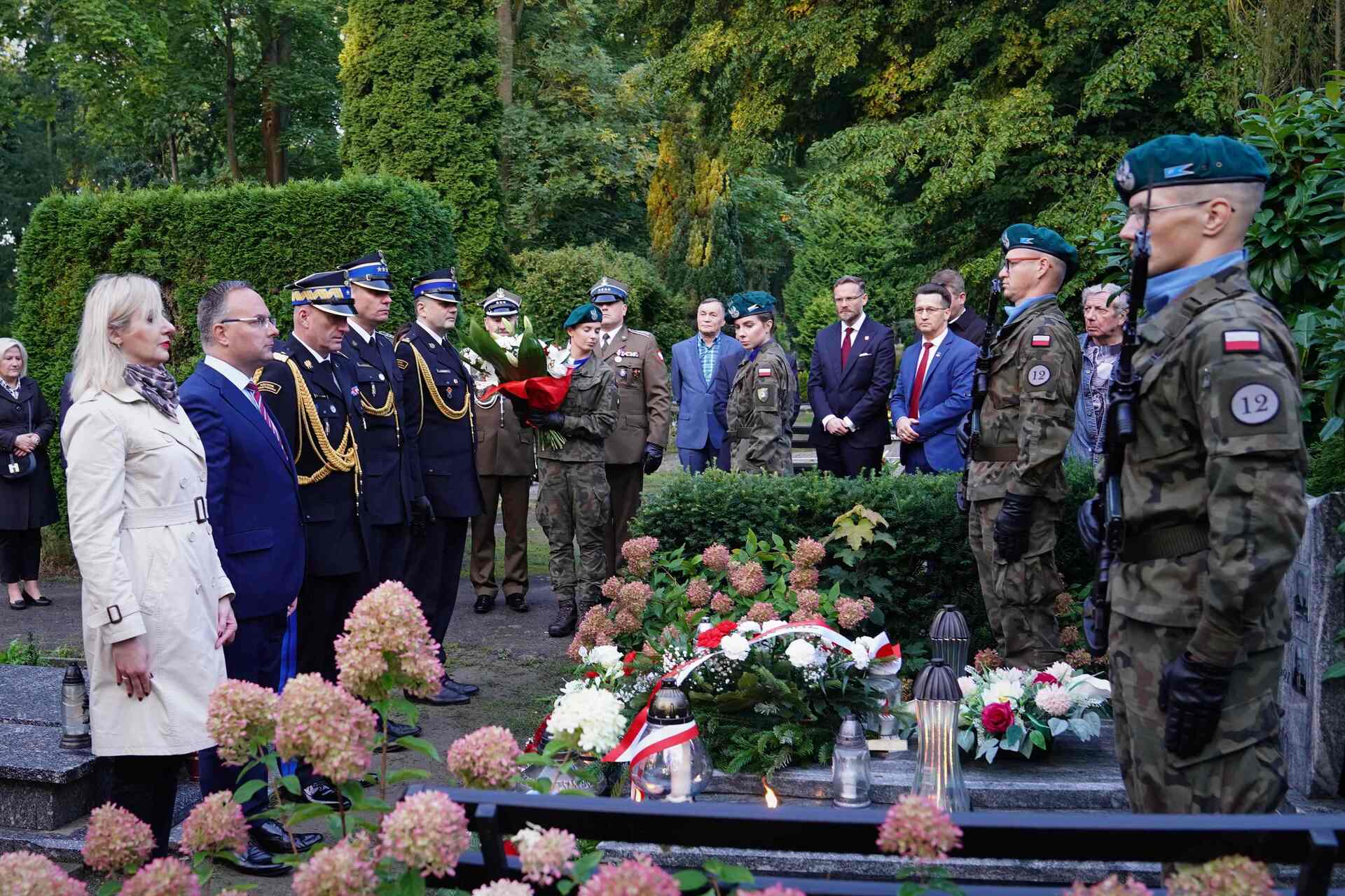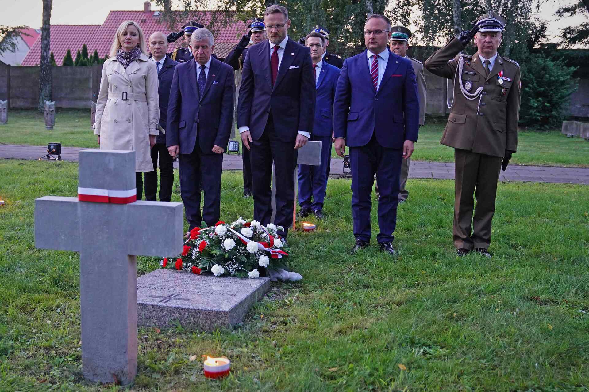 Szczecin. Uroczystości w Szczecinie rozpoczęły się o godz. 12:00 na Cmentarzu Centralnym przy obelisku „Bohaterom Września 1939”, który w 2019 r. staraniami szczecińskiego Oddziału IPN został poddany renowacji. Dyrektor IPN O. w Szczecinie, Krzysztof Męciński oraz Naczelnik Oddziałowego Biura Upamiętniania Walk i Męczeństwa, Marzena Szulc, złożyli kwiaty i zapalili znicze na grobach Stefana Nercia (Cmentarz Komunalny w Dąbiu), Jana Zielińskiego (Cmentarz Golęciński), Zygmunta Dopierały i Bronisława Żuka (Cmentarz Centralny w Szczecinie).