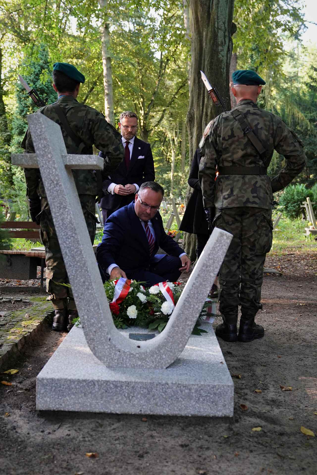 Choszczno. Hołd Władysławowi Chrzanowi w imieniu Oddziału IPN w Szczecinie oddał Naczelnik Oddziałowego Biura Lustracyjnego, Szymon Nowacki. Posterunek honorowy wystawił Garnizon Choszczno