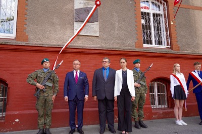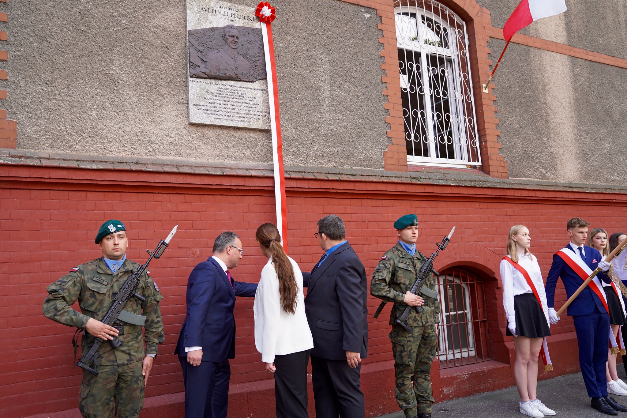 Tablicę upamiętniającą rotmistrza Witolda Pileckiego odsłonili podczas uroczystości w Technikum Ekonomicznym jego imienia w Szczecinie dyrektor szczecińskiego Oddziału Instytutu Pamięci Narodowej Krzysztof Męciński, dyrektor szkoły Andrzej Kobylec i uczennica szkoły.