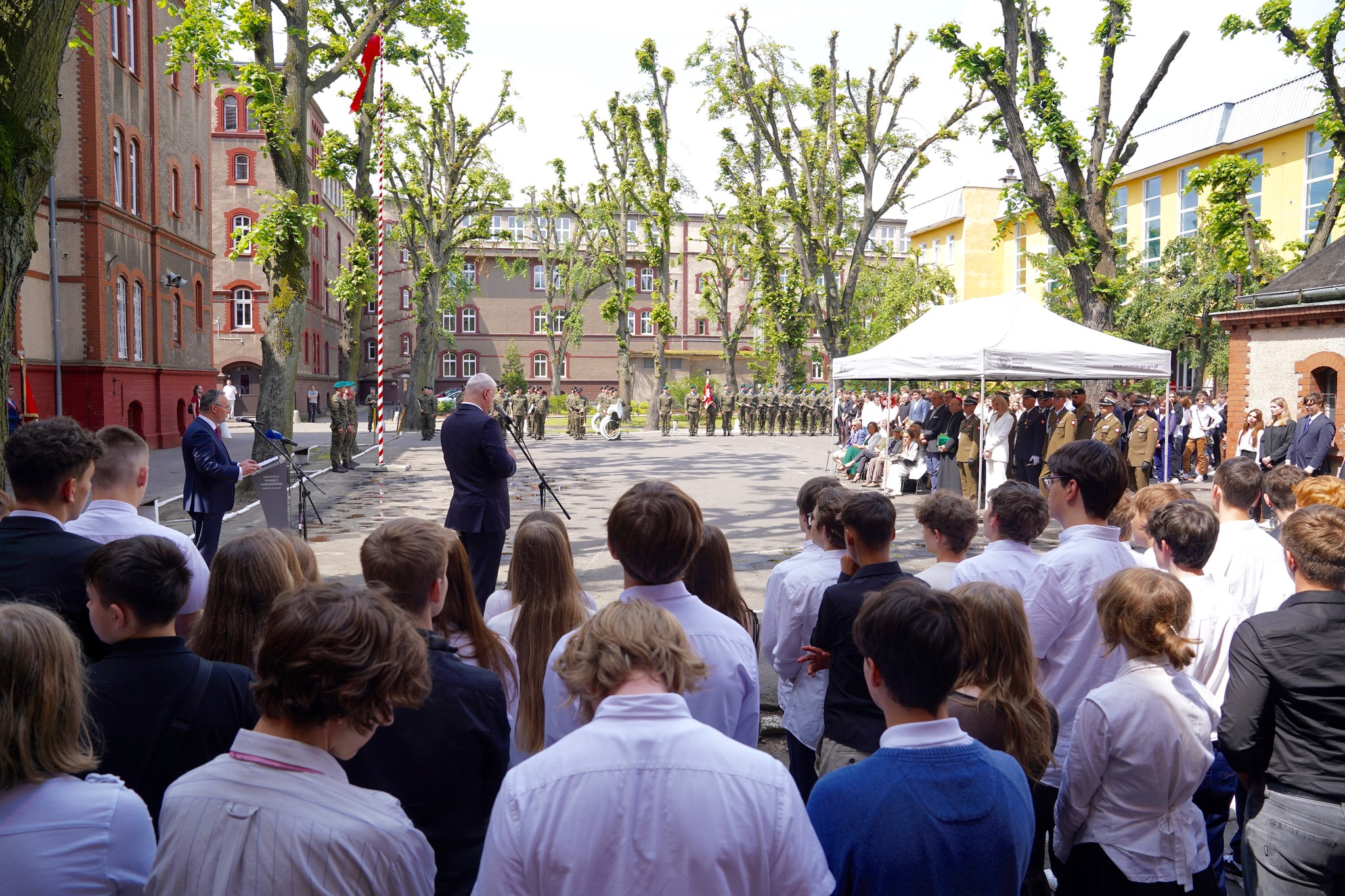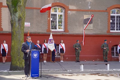 Waszym patronem, waszym bohaterem jest rotmistrz Witold PIlecki. Tak jak każdy młody człowiek był osobą niepokorną, szedł pod prąd wierny swoim wartościom i ideałom. Życzę wam, abyście przechodząc obok tej tablicy pamiętali o Rotmistrzu Pileckim i żeby zasady, które przyświecały mu przez całe życie były waszymi zasadami.
