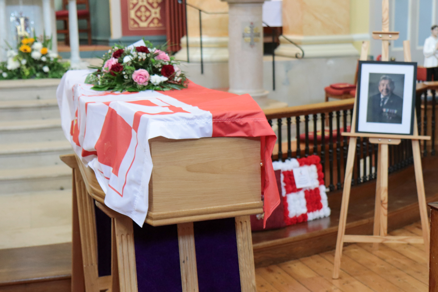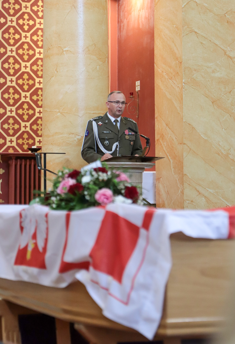 Ceremonię rozpoczęła msza święta w rzymsko-katolickim kościele pw. Św. Edmunda. Trumna przykryta flagą Polskich Sił Powietrznych została wniesiona do świątyni w asyście sztandarów stowarzyszeń weteranów RAF. Przy ołtarzu, obok katafalku wystawiono sztandar Stowarzyszenia Lotników Polskich w Wielkiej Brytanii, portret zmarłego oraz poduszkę z odznaczeniami. W kościele zgromadziła się bliscy por. Frąckiewicza: jego dwie córki Linda i Stephany z mężami oraz wnuki ze swoimi rodzinami. Przybyli także liczni przyjaciele zmarłego i przedstawiciele polskiej społeczności w Wielkiej Brytanii, w tym Marcin i Jadwiga Kuniccy (Polskie Miejsca w Wielkiej Brytanii) wspierający rodzinę w organizacji uroczystości. Mszę odprawił ojciec White, weteran RAF, obecnie kapelan Królewskich Sił Powietrznych. Prezesa Instytutu Pamięci Narodowej reprezentował Pan Adam Siwek dyrektor Biura Upamiętniania Walk i Męczeństwa IPN. Konsul RP w Londynie Pan Tomasz Balcerowski odczytał listy od Prezydenta RP Andrzeja Dudy oraz podsekretarza stanu MSZ. Attaché Obrony przy Ambasadzie RP w Londynie płk. Robert Pawlicki odczytał list od wicepremiera, Ministra Obrony Narodowej Władysława Kosiniaka-Kamysza.