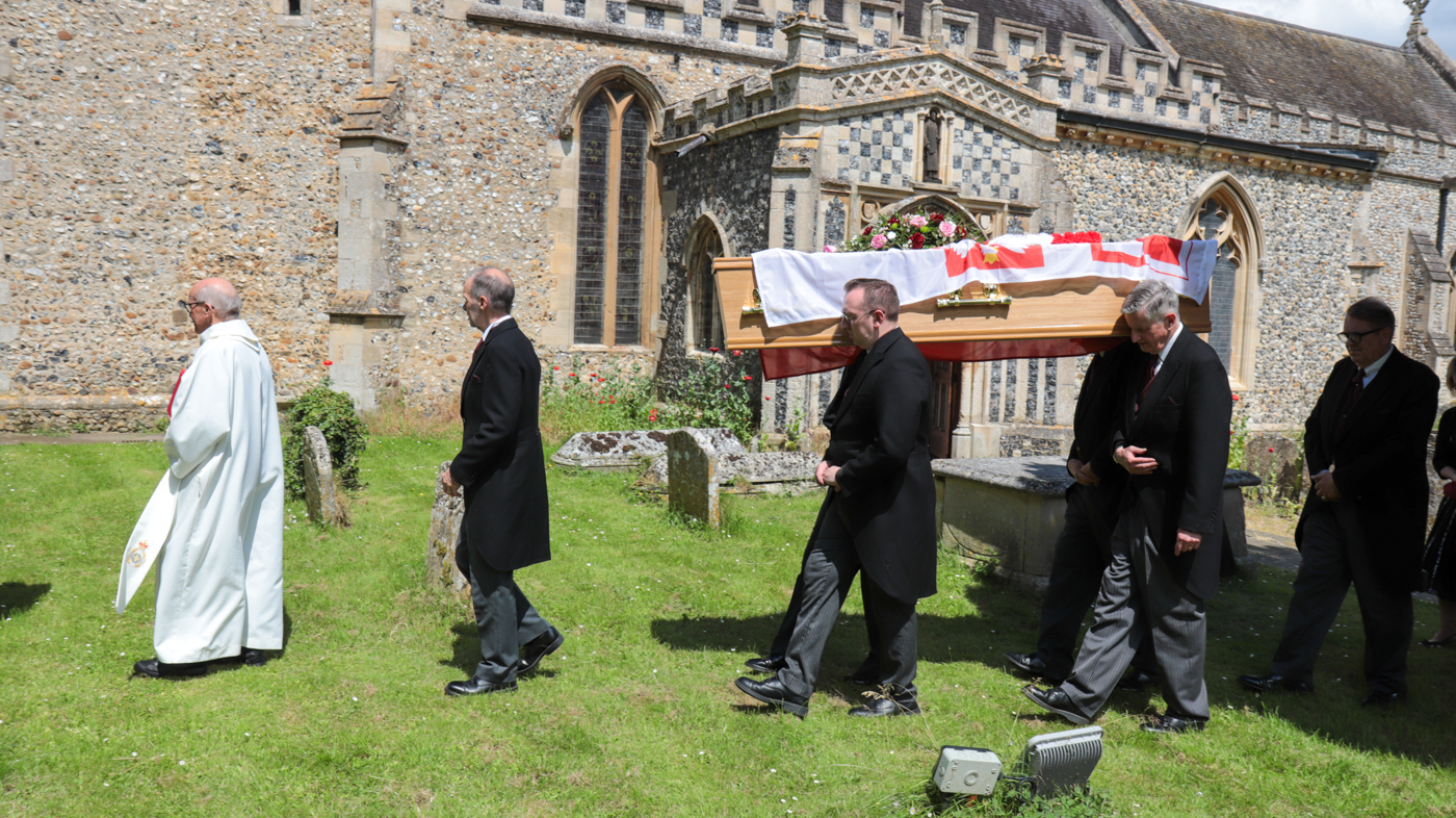 Por. Mieczysław Frąckiewicz został pochowany obok swojej żony Very na małym cmentarzyku przy kościele św. Leonarda w wiosce Horringer, na południowych obrzeżach Bury St. Edmunds. Składaniu trumny do grobu towarzyszył sygnał „Spij kolego”. Dyrektor Adam Siwek zapalił na grobie znicze oraz przekazał córkom zmarłego tabliczkę oznaczającą grób weterana walk o wolność i niepodległość Polski. Zostanie ona umieszczona na nowej tablicy nagrobnej.