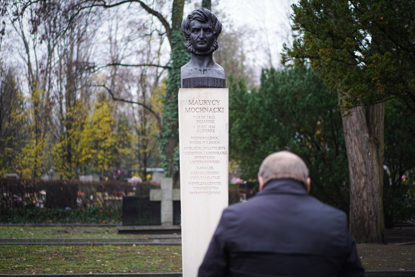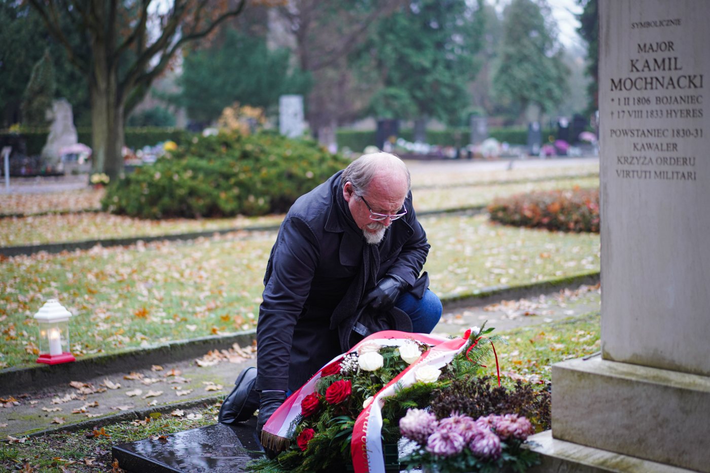 Wiązanka z biało czerwoną szarfą została złożona na Cmentarzu Wojskowym na Powązkach pod pomnikiem Maurycego Mochnackiego, wybitnego publicysty i historyka, który był jednym z intelektualnych liderów powstania listopadowego. Mochnacki, znany ze swojej działalności patriotycznej i literackiej, był autorem ważnych prac historycznych, w tym dotyczących wydarzeń z 1830 roku. Maurycy Mochnacki pisał: „Nigdy energia ducha politycznego w całym narodzie, we wszystkich częściach kraju do takiego stopnia nie dochodziła jak podczas Powstania”.