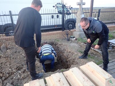 9 kwietnia 2018 pracownicy BUWiM Mariusz Sawa z Lublina oraz Piotr Kędziora-Babiński z Warszawy wzięli udział w ekshumacji pięciu cywilnych ofiar egzekucji wykonanej w listopadzie 1942 r. W wyniku powieszenia zginęli m.in. Jan Niedzielski (ur. 1902), Józef Kozak (ur. 1914) i Bolesław Rogowski (ur. 1910). Byli to okoliczni mieszkańcy, którzy kilka miesięcy wcześniej zostali osadzeni w więzieniu na Zamku w Lublinie. Ich ciała zostały pogrzebane w ruinach posesji po drugiej stronie drogi, gdzie przeleżały do dnia dzisiejszego. Ekshumacji dokonali Adam Golański, Maciej Milak z firmy PU Metodis oraz Piotr Kędziora-Babiński z IPN. W ekshumacji wzięły udział rodziny pomordowanych oraz Sylwia Kostyra z Lubelskiego Urzędu Wojewódzkiego, Zenon Madzelan – wójt Gminy Borzechów, Wacław Wierzbowski – sołtys Kaźmierowa. Szczątki zostały pochowane przez ks. Andrzeja Wróblewskiego z Borzechowa na cmentarzu w Kłodnicy Górnej, gdzie wkrótce powstanie upamiętnienie pomordowanych. Przy okazji chcielibyśmy podziękować pani Teresie Głuch, wnuczce Jana Niedzielskiego, i panu Aleksandrowi Soli, szwagrowi Józefa Kozaka, dzięki determinacji których ta ekshumacja mogła się odbyć.