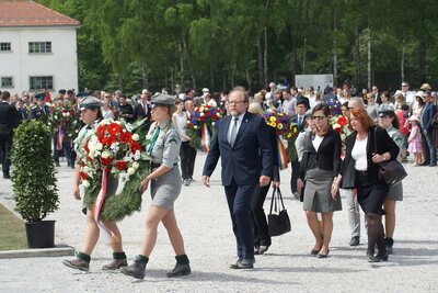 29 kwietnia br. delegacja Biura Upamiętniania Walk i Męczeństwa w składzie: dyrektor biura Adam Siwek, dr Anna Jagodzińska, Anna Wicka i Anna Koszowy uczestniczyła w obchodach 73. rocznicy wyzwolenia KL Dachau. Uroczystości rozpoczęła msza święta w kaplicy przy położonym na terenie obozu klasztorze sióstr karmelitanek. Droga do klasztoru prowadzi obok Kaplicy Konania Chrystusa, na której znajduje się tablica informująca w języku polskim, angielskim, niemieckim i francuskim, że co trzecia ofiara obozu była Polakiem oraz, że zamordowano tu połowę spośród 1780 więzionych polskich duchownych. Karmel pw. Najświętszej Krwi w Dachau został założony w 1964 roku. Tradycyjnie w jego murach odprawiane jest katolickie nabożeństwo, równolegle z odbywającymi się w odrębnych kaplicach ceremoniałami żydowskimi, protestanckimi i prawosławnymi. Po tej części, wzorem poprzednich lat, wszyscy uczestnicy uroczystości spotykają się przy obozowym krematorium, aby po oficjalnych wystąpieniach przejść przez główną aleję obozową na plac apelowy z zachowanymi budynkami administracyjnymi i bramą obozową. Tam znajduje się główne upamiętnienie ofiar obozu, pod którym - po oficjalnych wystąpieniach – przybyłe delegacje złożyły kwiaty. Po raz pierwszy podczas tych obchodów odczytany został po polsku fragment wspomnień polskiego więźnia KL Dachau. Pracownicy BUWiM złożyli wieniec w imieniu Prezesa i Instytutu Pamięci Narodowej.