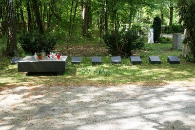 Ostfriedhof, Monachium – cmentarz miejski z krematorium wykorzystywanym do palenia zwłok więźniów przywożonych z KL Dachau. Delegacja odwiedziła grób pochowanego na tym cmentarzu Alfreda Schütza, pianisty i kompozytora, żołnierza II Korpusu Polskiego, autora pieśni „Czerwone maki na Monte Cassino”.
