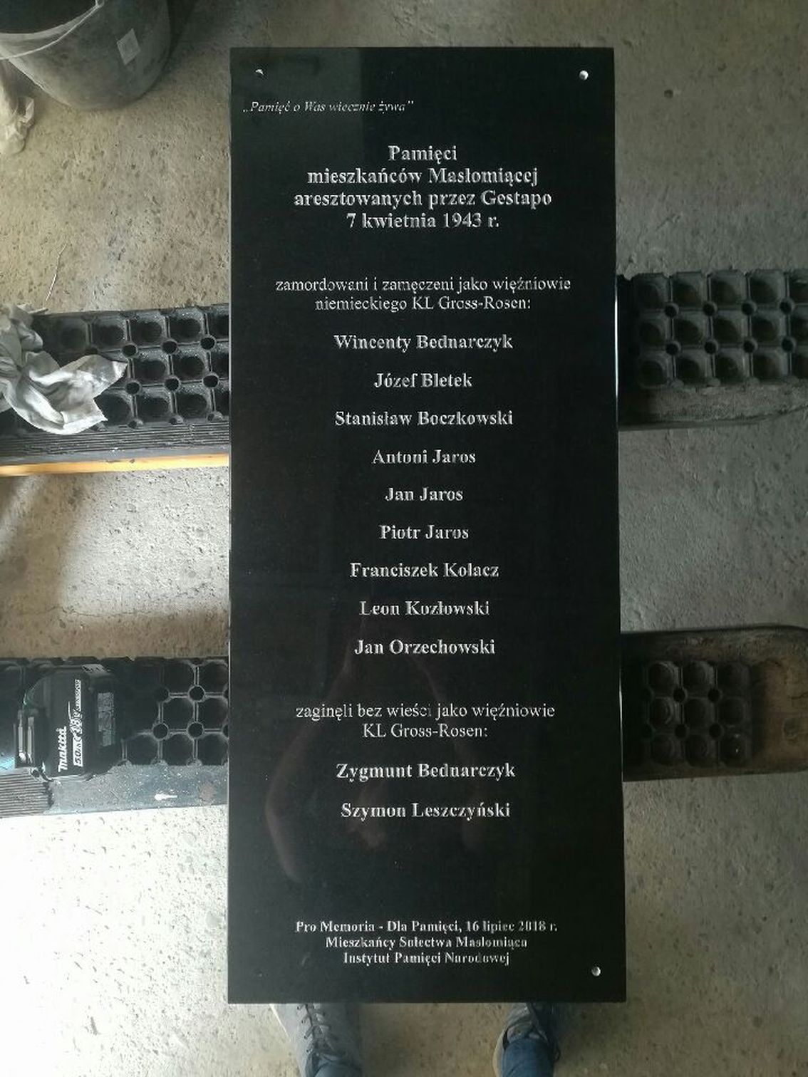 Na cmentarzu w Więcławicach Starych pod Krakowem 15 lipca 2018 r. odbyła się uroczystość odsłonięcia tablicy, poświęconej jedenastu mieszkańcom pobliskiej Masłomiącej, aresztowanym w 1943 r. przez Niemców i wywiezionym do obozu koncentracyjnego Gross-Rosen, gdzie zginęli.