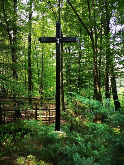 Informujemy, że zakończyły się prace przy wymianie krzyża stanowiącego część grobu wojennego w Lesie Wiączyńskim na wysokości miejscowości Teolinie (gm. Nowosolna, woj. łódzkie).