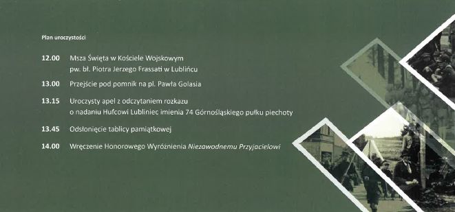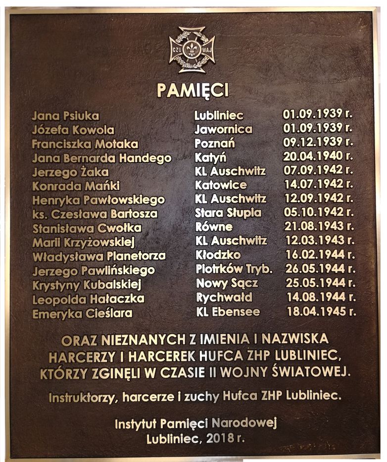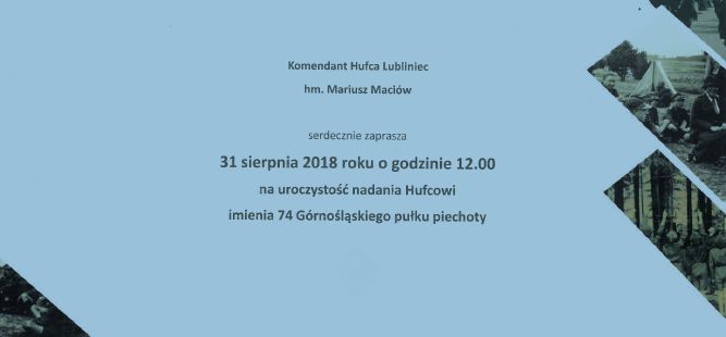 31 sierpnia 2018 r. o godz. 12:00 odbędą się uroczystości nadania Hufcowi ZHP Lubliniec imienia 74 Górnośląskiego Pułku Piechoty. W ich trakcie odsłonięta zostanie tablica poświęcona harcerzom i harcerkom Hufca ZHP Lubliniec, którzy zginęli w czasie II wojny światowej. Tablica, ufundowana przez Oddział IPN w Katowicach, została umieszczona na Pomniku ku czci żołnierzy Wojska Polskiego, Powstańców Śląskich i członków ruchu oporu poległych w latach 1939-45, który znajduje się na Placu Golasia w Lublińcu.