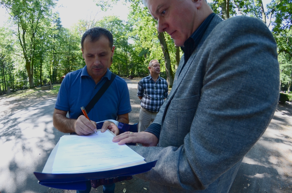 22 sierpnia 2018 roku przedstawiciele inwestora – szczecińskiego oddziału Instytutu Pamięci Narodowej, w towarzystwie przedstawicieli zarządzającego terenem Cmentarza Centralnego – Zakładu Usług Komunalnych w Szczecinie, przekazali wykonawcy – konsorcjum firm P.H.U. „BUDMAR” Marek Niedośpiał i Wyroby Granitowe Wołczyk sp. J., plac i teren pod budowę pomnika ofiar nacjonalistów ukraińskich w latach 1939-1947.