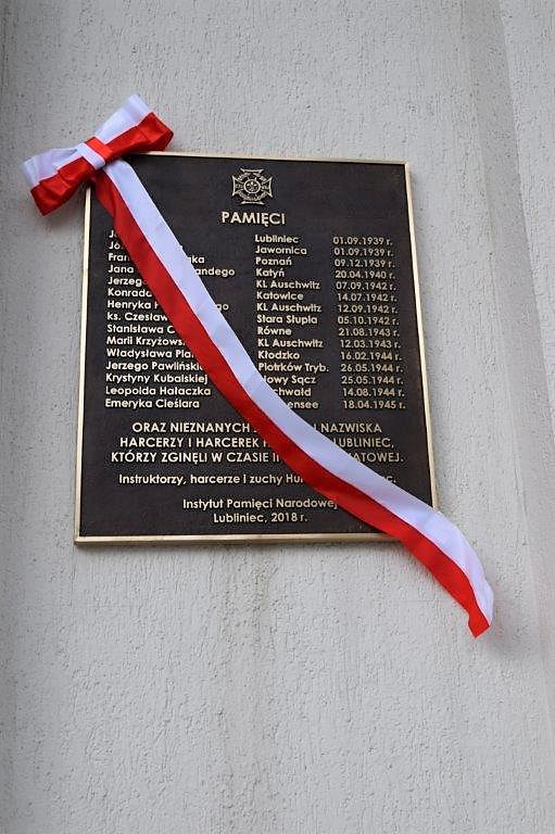 Tablica upamiętnia 15 osób wywodzących się z harcerstwa lublinieckiego, które zginęły w czasie II wojny światowej.