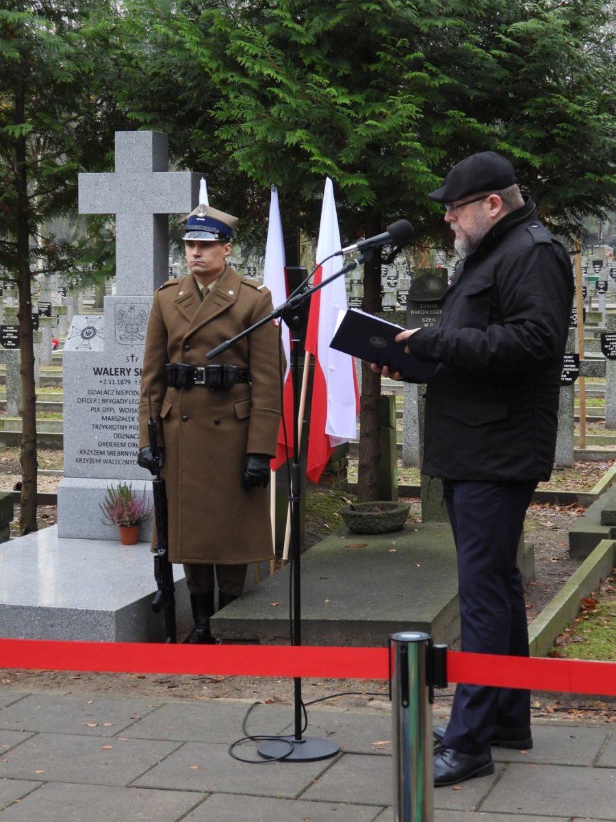 Prezes Instytutu Pamięci Narodowej dr Jarosław Szarek, zwracając się do zgromadzonych, podkreślił, że: „troska o miejsca spoczynku bohaterów niepodległościowych i kultywowanie ich pamięci jest jednym z priorytetów działalności IPN, oraz „że nie ma lepszego miejsca pochówku dla takiego wielkiego człowieka jak Walery Sławek, niż to w morzu krzyży tych, co oddali swoje życie za ojczyznę”. Prezes IPN zakończył swoją wypowiedź słowami: „jestem przekonany, że te pomniki będą świadectwem dla przyszłych pokoleń, że Polska pamięta o swoich bohaterach”.