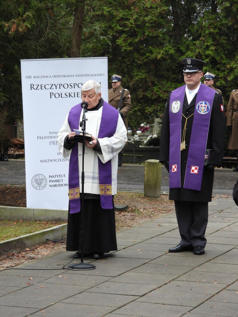 Ksiądz infułat prof. dr Jan Miazek z Kurii Metropolitalnej oraz ksiądz por. Daniel Piejko z Ordynariatu Polowego – 6 grudnia 2018. Fot. Mateusz Niegowski (IPN) -