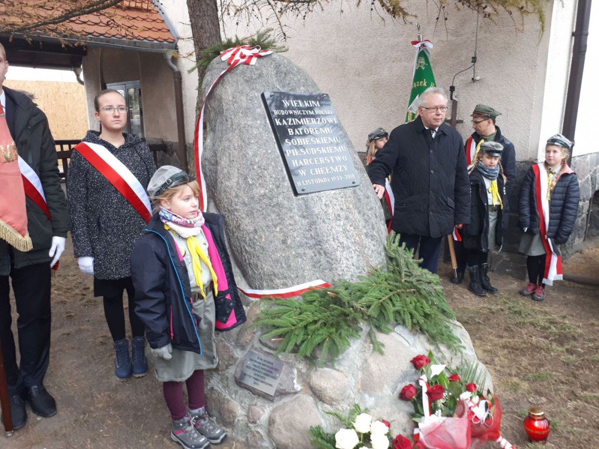 W trakcie akademii osobom aktywnie wspierającym misję szkoły przyznano tytuły honorowe „Szlachetne Skrzydła”. Po części artystycznej zatytułowanej „Razem dla Niepodległej”, przygotowanej przez uczniów oraz nauczycieli, uroczyście odsłonięto tablicę upamiętniającą Budowniczych Polski – Kazimierza Wielkiego, Stefana Batorego, Jana III Sobieskiego oraz Józefa Piłsudskiego. Głaz pamiątkowy został ustanowiony inicjatywą harcerzy 19 listopada 1933 r. Zniszczoną przez Niemców w trakcie II wojny światowej tablicę odtworzył Instytut Pamięci Narodowej.
