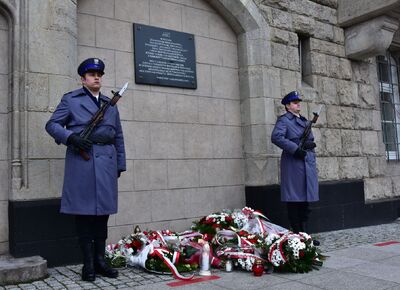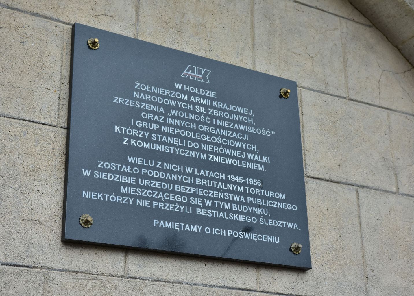 O godz. 13:00 kwiaty złożono także pod tablicą upamiętniającą żołnierzy podziemia niepodległościowego, więzionych i torturowanych w budynku WUBP/WUdsBP w latach 1945–1956. Tablica znajduje się umieszczona jest na ścianie gmachu Komendy Wojewódzkiej Policji w Szczecinie.