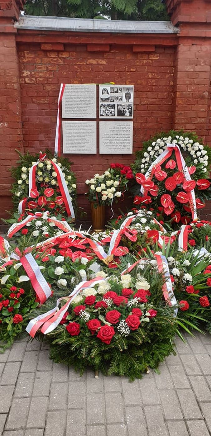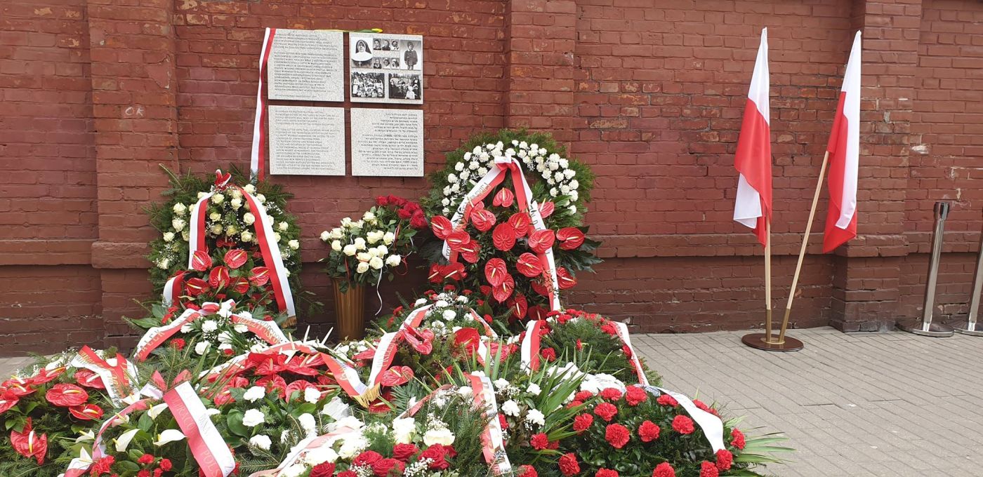 Po poświęceniu tablicy przez ks. prałata dr. Roberta Ogrodnika złożono w asyście wojska wieńce. Wieniec złożyli prezes IPN dr Jarosław Szarek oraz zastępca prezesa dr Mateusz Szpytma. Złożono również wieńce od prezydenta RP Andrzeja Dudy, premiera Mateusza Morawieckiego, marszałków Sejmu i Senatu, Polskiego Towarzystwa Sprawiedliwych Wśród Narodów Świata, Ministerstwa Edukacji Narodowej, zarządu Poczty Polskiej, Urzędu do Spraw Kombatantów i Osób Represjonowanych, Komendanta Głównego Policji, dyrektora Muzeum Getta Warszawskiego, Polskiej Fundacji Narodowej i zarządu Polskiego Radia SA.