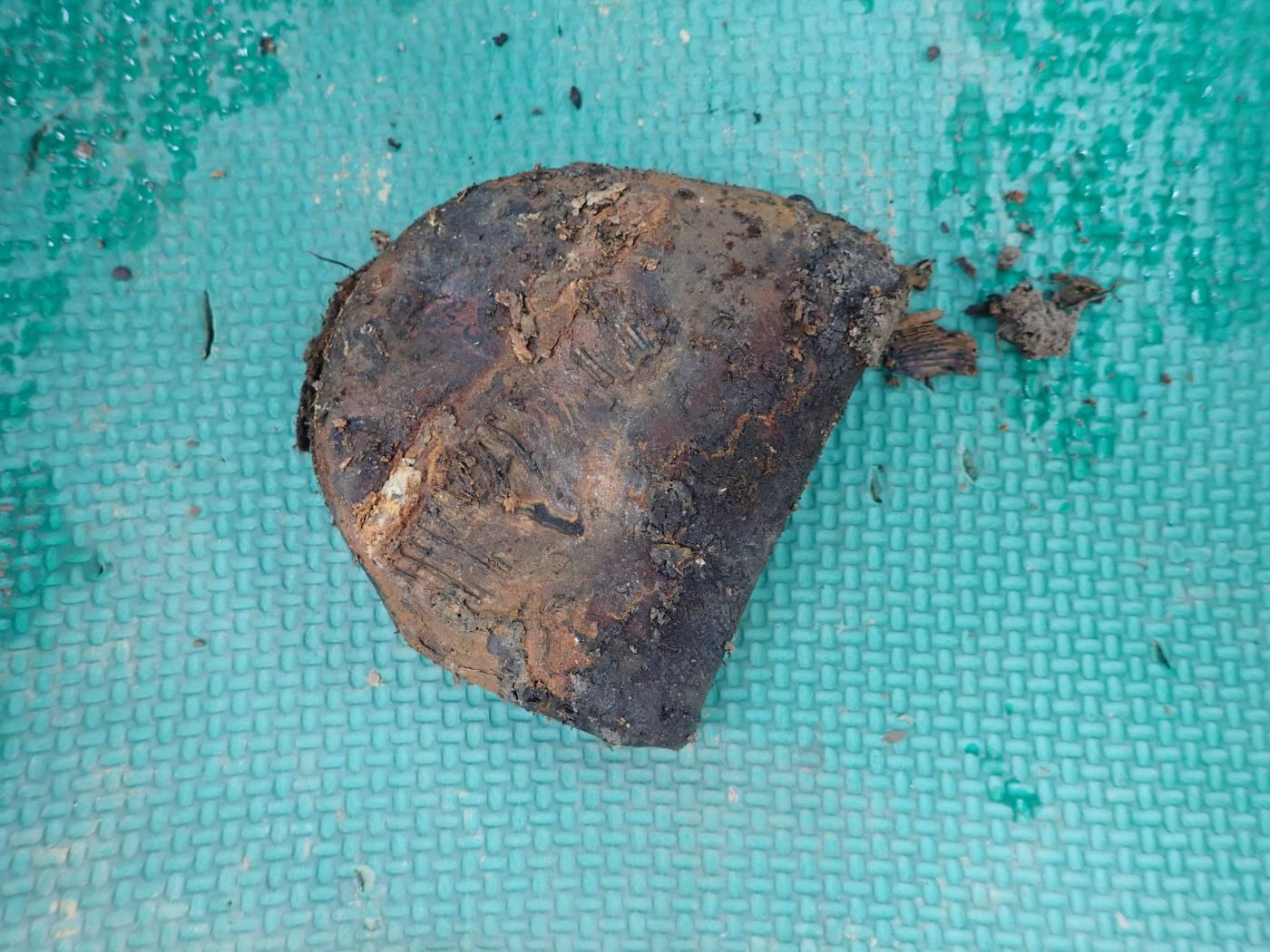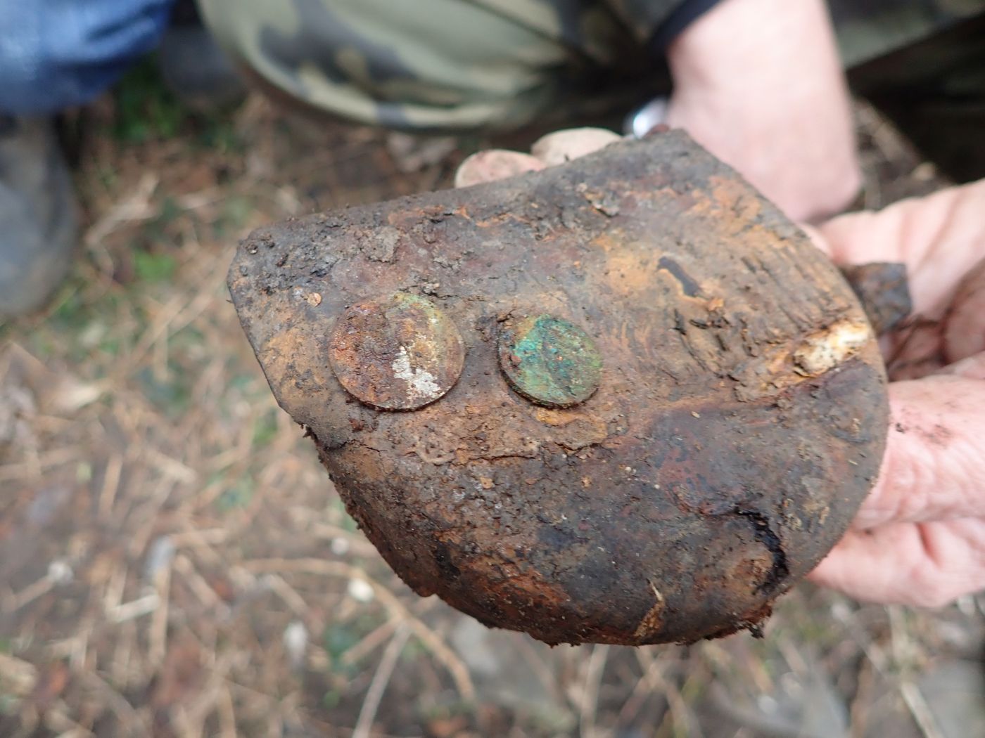 W wyniku prac ekshumacyjnych, odnaleźliśmy szczątki ludzkie a przy nich portfel z monetami, dokumenty, gwizdek, materiał z guzikami żołnierskimi, paski, buty żołnierskie, lusterko.