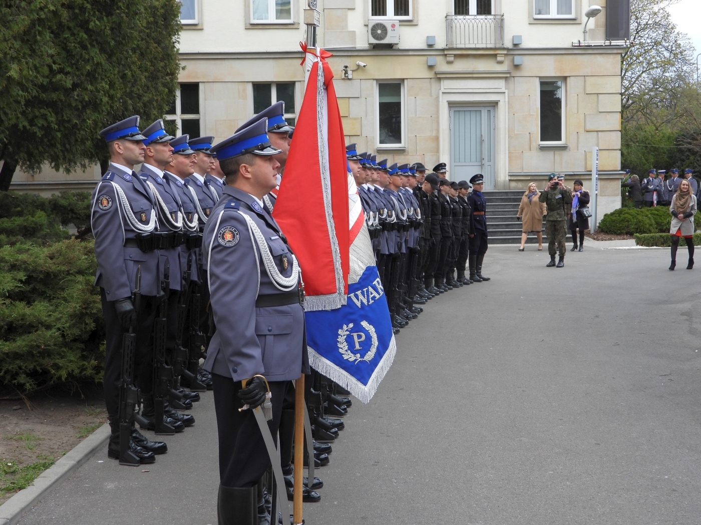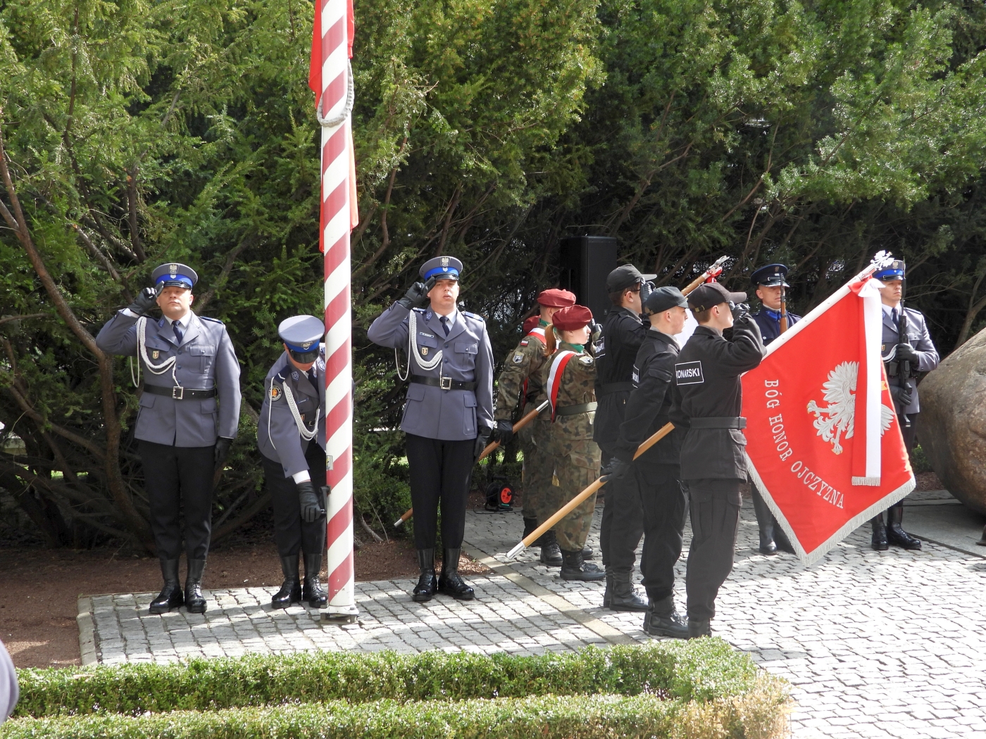 Na dziedzińcu Komendy Głównej Policji zebrali się licznie funkcjonariusze Policji, zaproszeni goście, a wśród nich rodziny przedwojennych policjantów. Instytut Pamięci Narodowej reprezentowali dyrektor Biura Upamiętniania Walk i Męczeństwa Adam Siwek oraz p.o. zastępcy dyrektora Biura Edukacji Narodowej dr Paweł Błażewicz. Uroczystość uświetnili m.in.: sekretarz stanu w Ministerstwie Spraw Wewnętrznych i Administracji Jarosław Zieliński, zastępcy komendanta głównego Policji: nadinsp. Kamil Bracha i mł. insp. Tomasz Szymański, komendant stołeczny Policji nadinsp. Paweł Dobrodziej, wojewoda mazowiecki Zdzisław Sipiera, prezes Stowarzyszenia „Rodzina Policyjna 1939 r.” w Łodzi Jarosław Olbrychowski, prezes Ogólnopolskiego Stowarzyszenia Rodzina Policyjna 1939 r. Teresa Bracka, prezes Warszawskiego Stowarzyszenia Rodzina Policyjna 1939 r. Anna Wesołowska, przedstawiciele Fundacji Pomocy Wdowom i Sierotom po Poległych Policjantach oraz Stowarzyszenia Generałów Policji Rzeczypospolitej Polskiej, reprezentanci służb mundurowych i wojska, młodzież klas mundurowych oraz duchowieństwo. W uroczystości uczestniczyła kompania reprezentacyjna Policji wraz ze sztandarem KGP. Oprawę muzyczną zapewniła Orkiestra Reprezentacyjna Policji.
