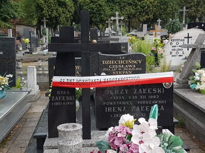 Jak co roku pracownicy Oddziałowego Biura Upamiętniania Walk i Męczeństwa przeprowadzili na łódzkich nekropoliach akcję "63 dni Powstania Warszawskiego" polegającą na oznaczaniu okolicznościową biało-czerwoną wstęgą grobów uczestników Powstania. Akcja objęła 14 nekropoli, zarówno wyznaniowych (rzymskokatolickie, łagiewnicko-augsburska, żydowska) jak i komunalnych. Aktualnie nasza ewidencja liczy ponad 180 osób, wśród których dominują oczywiście weterani Powstania, ale obejmujemy nią również poległych i pomordowanych cywilów oraz lotników niosących pomoc walczącej stolicy. Oznaczamy zarówno faktyczne miejsca pochówku, jak i groby symboliczne.