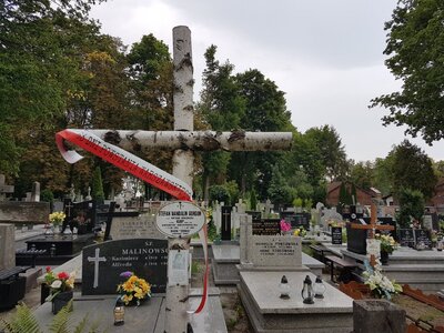 Szarfy będą wisieć przez 63 dni. W pracy na cmentarzach pomagali nam koledzy z oddziałowego pionu poszukiwań i identyfikacji - dziękujemy!