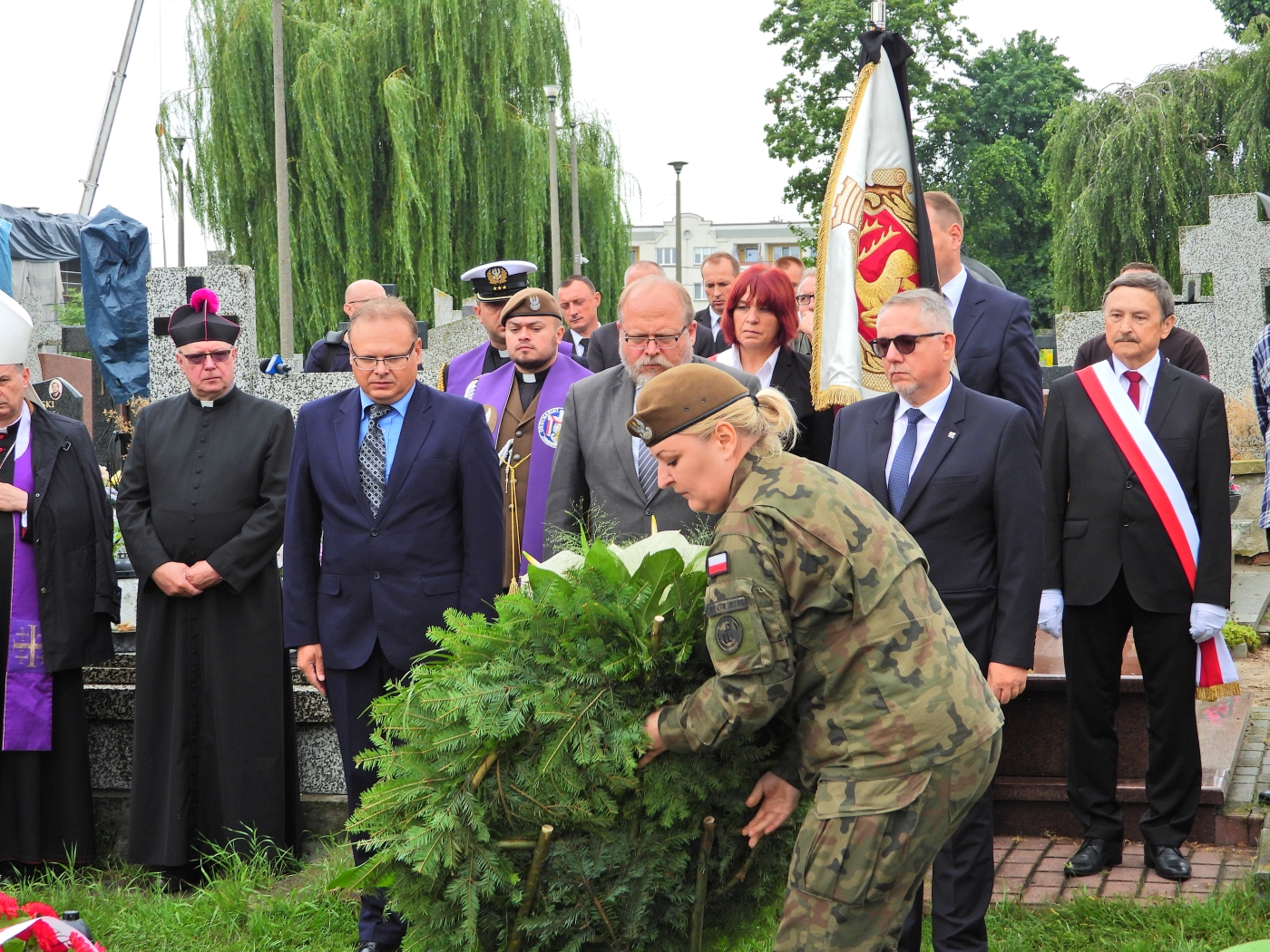 Na zakończenie uroczystości rozległy się strzały salwy honorowej, następnie na grobie złożono wieńce oraz zapalono znicze.
