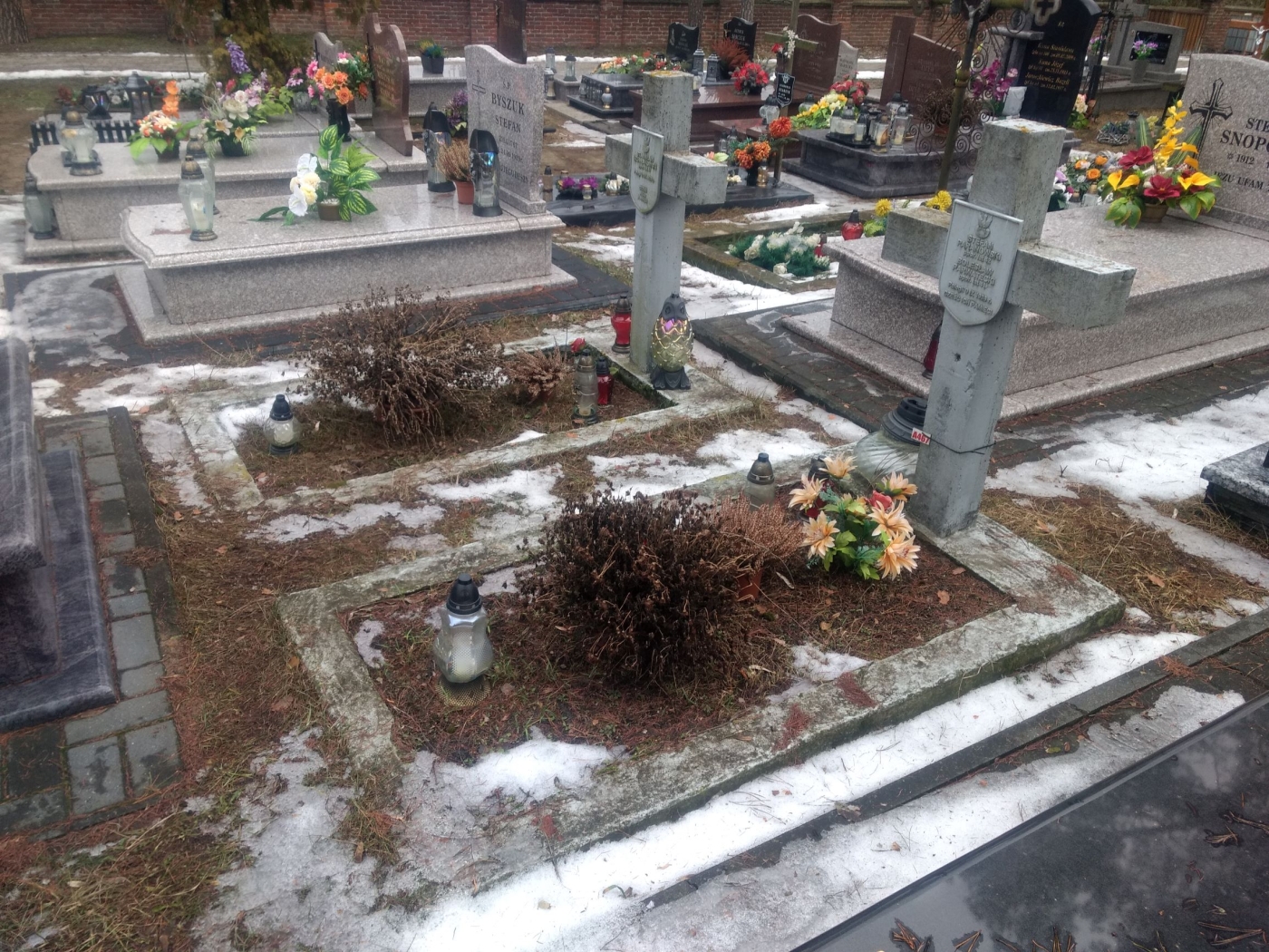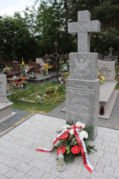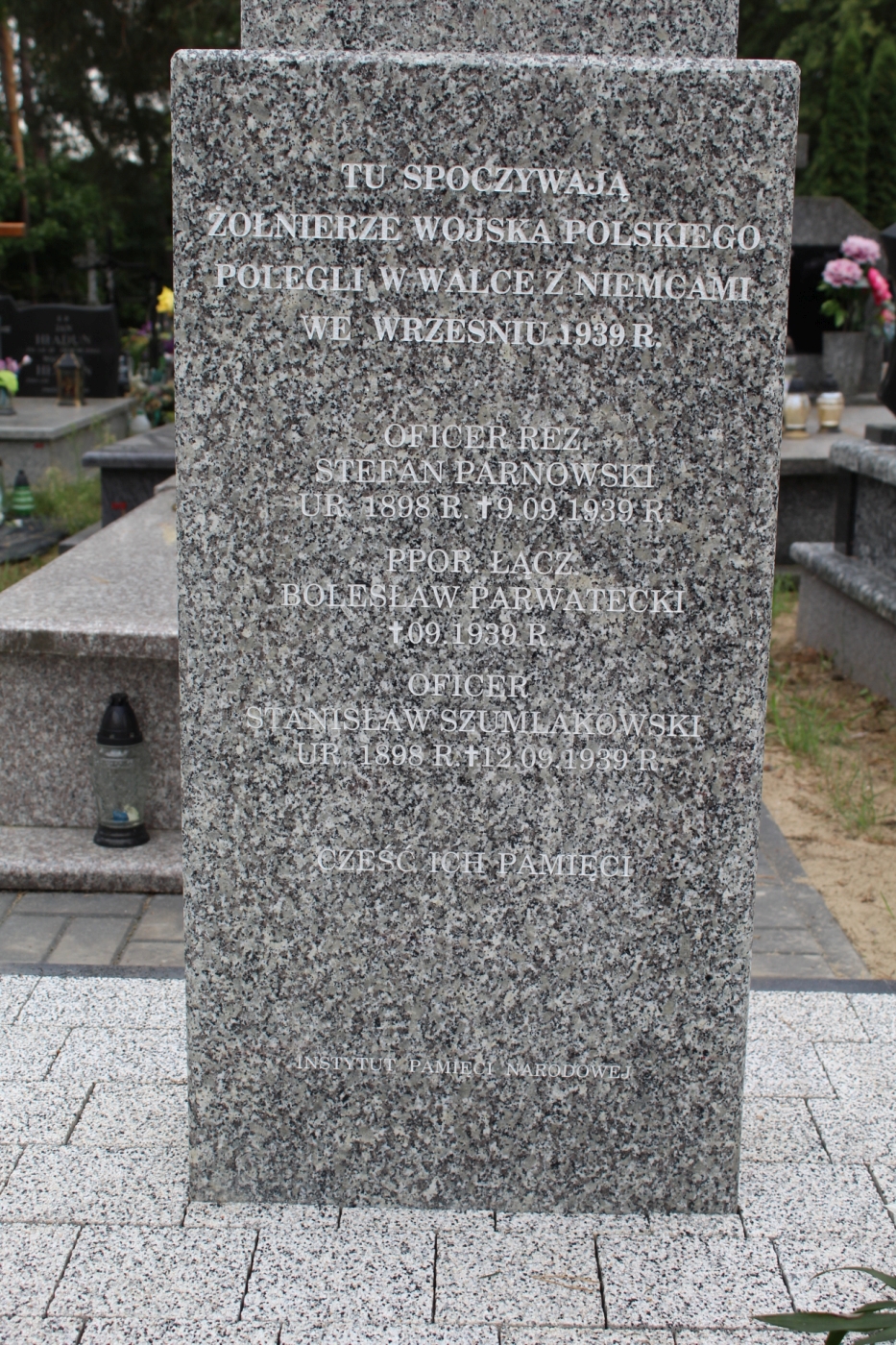 W mogile spoczywają: oficer rez. Stefan Parnowski, ppor. łącz. Bolesław Parwatecki, oraz oficer Stanisław Szumlakowski. Prace obejmowały rozebranie i usunięcie obrzeży oraz krzyży, wykonanie fundamentu, nowego pomnika z inskrypcją poświęconą poległym żołnierzom oraz wizerunkiem orła wojskowego (wzór z 1919 r.).