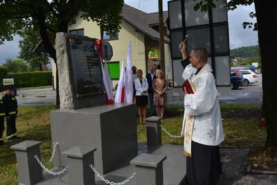 Po przemówieniach p. Jerzy Pilch wraz z p. Janem Kwaśniewiczem dokonali odsłonięcia tablicy, a ks. prob. Roman Berke poświęcenia obiektu. Ostatnim elementem uroczystości było złożenie kwiatów i zapalenie zniczy.